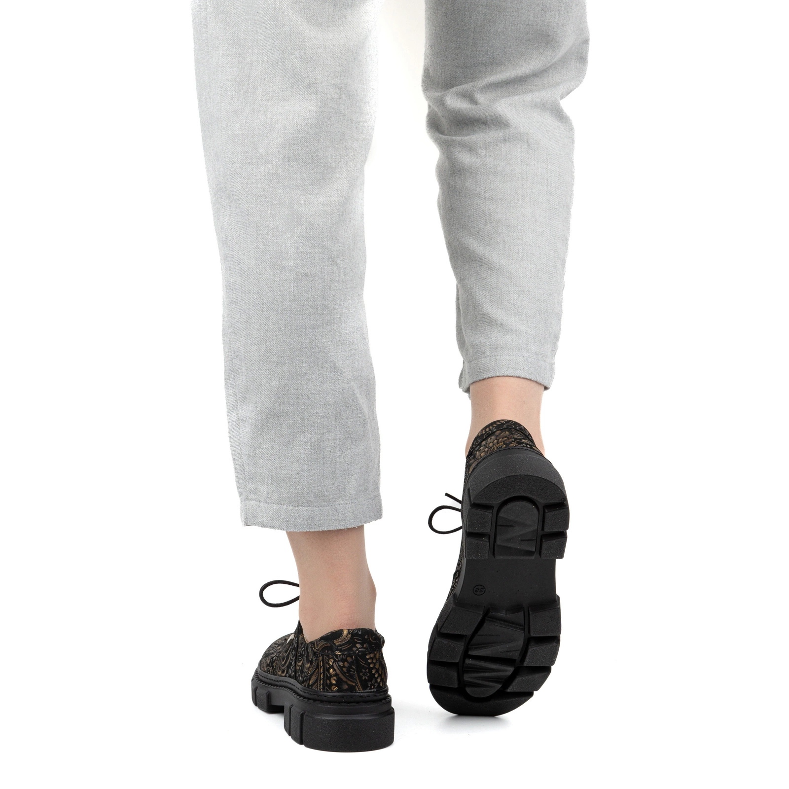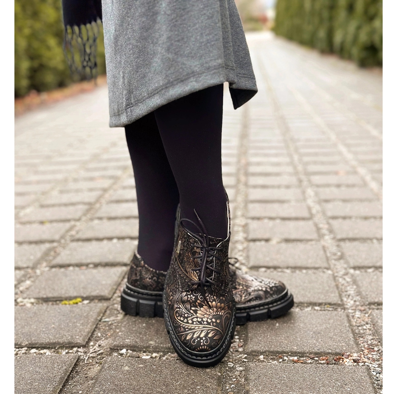 Les chaussures en cuir à semelle épaisse pour femme Olivier, modèle 1134, sont un incontournable de la garde-robe de chaque femme. Fabriquées en cuir naturel de haute qualité, ces chaussures uniques séduisent par leur design floral délicat qui ajoute un caractère subtil et élégant au style. Les couleurs dorées et les détails multicolores font de ces chaussures le point central de tout style.