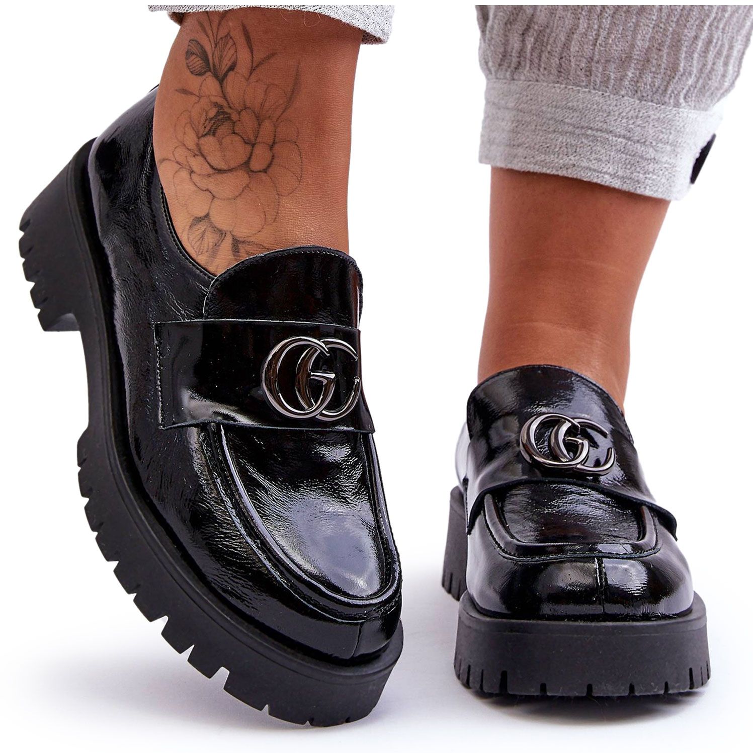 Élégants chaussures Laura Messi pour femmes - Le modèle Rosefall dans une finition noire classique. Fabriqué entièrement en cuir naturel, intégré sur une plate-forme massive et un talon stable et plat (4 cm de haut). L'ajout de strass subtiles donne aux chaussures un personnage à la mode, grâce à laquelle ils sont excellents dans les stylisations tous les jours et plus élégantes.
