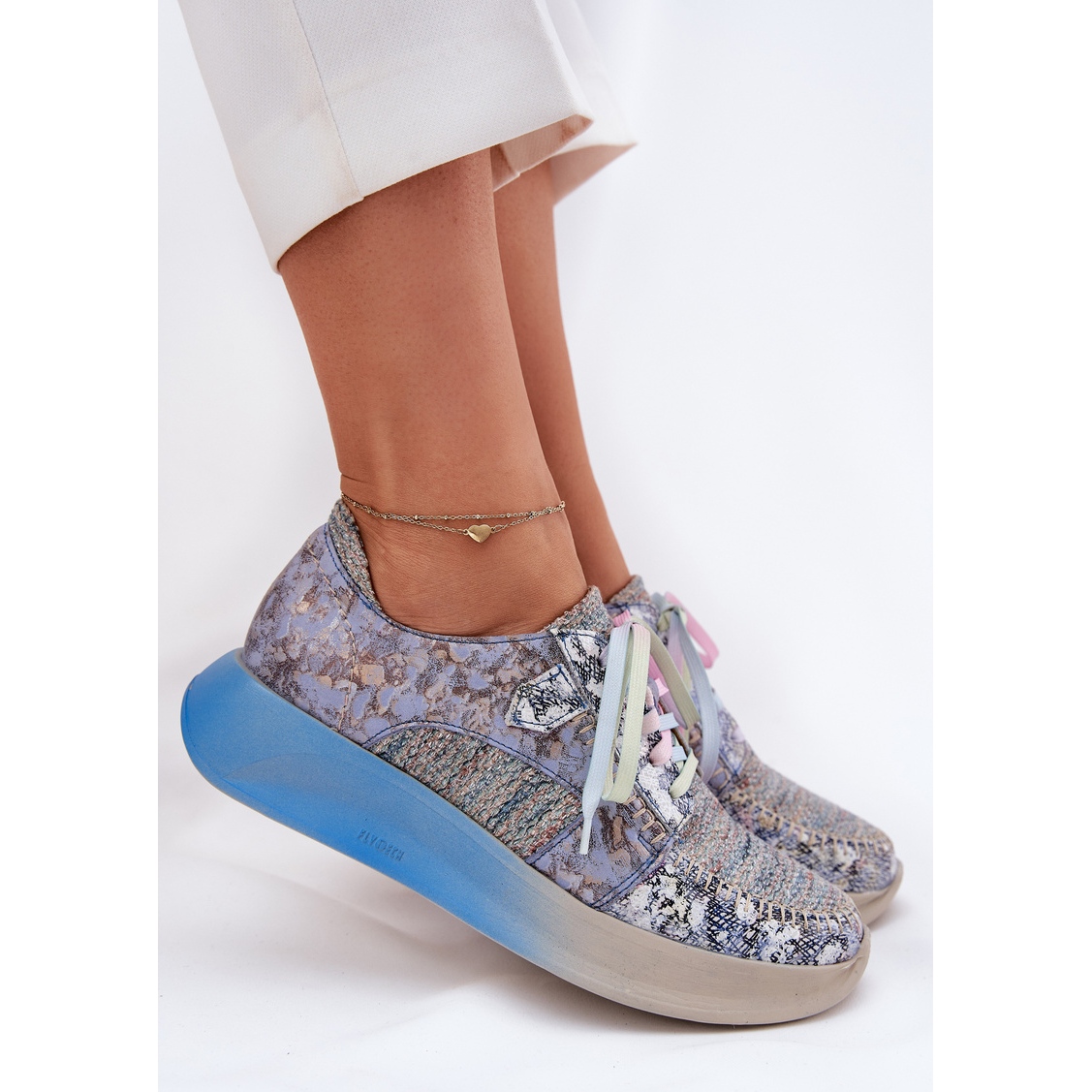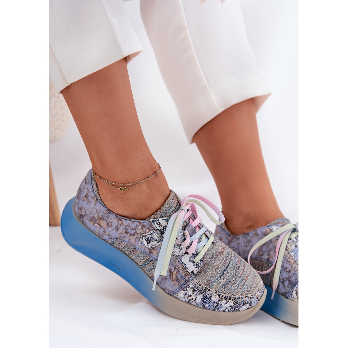 Les chaussures Maciejka sont placées sur une plate-forme de 3 cm de haut, ce qui ajoute non seulement du style, mais augmente également le confort lors de la marche. La hauteur de la tige de 6,5 cm fait que ces chaussures collent bien sur le pied. La couleur bleue animera certainement toute stylisation, et le mélange de dessins complète leur caractère unique.