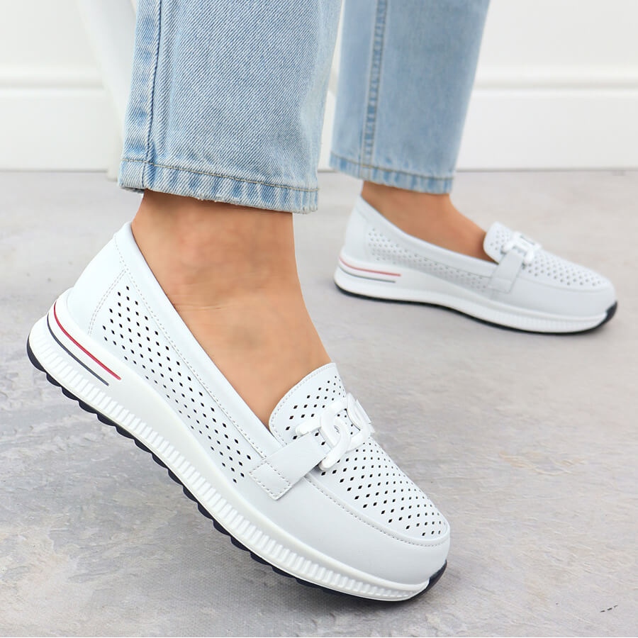 Grâce à l'insertion, ces chaussures sont non seulement élégantes, mais aussi pratiques - faciles à mettre et à décoller. Leurs couleurs blanches classiques les font parfaitement se fondre avec diverses tenues pour femmes, à la fois décontractées et plus élégantes.