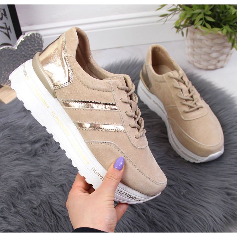 Les baskets féminines élégantes Filippo dans PAW328B combinent une forme classique avec un personnage à la mode et légèrement sportif. Le cuir naturel et la plate-forme confortable, 4 cm, assurent le confort toute la journée, et la couleur beige universelle fonctionnera à la fois dans des styles décontractés et plus élégants.