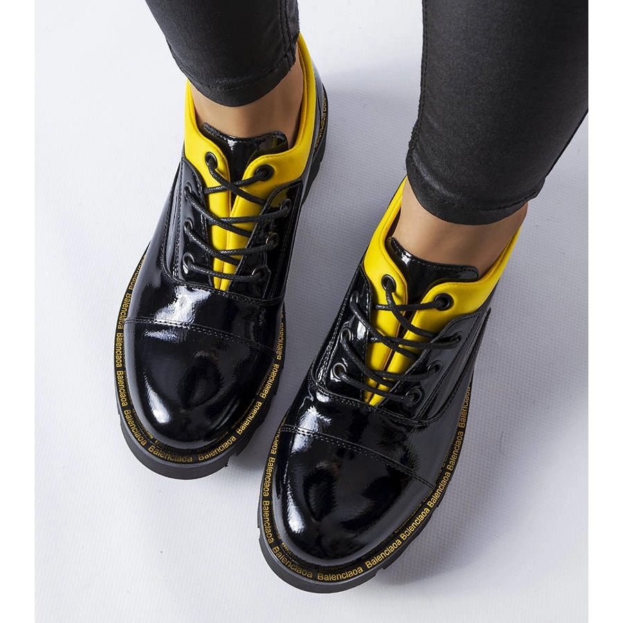 Détails: Chaussures en cuir verni noir et jaune Amandier le noir