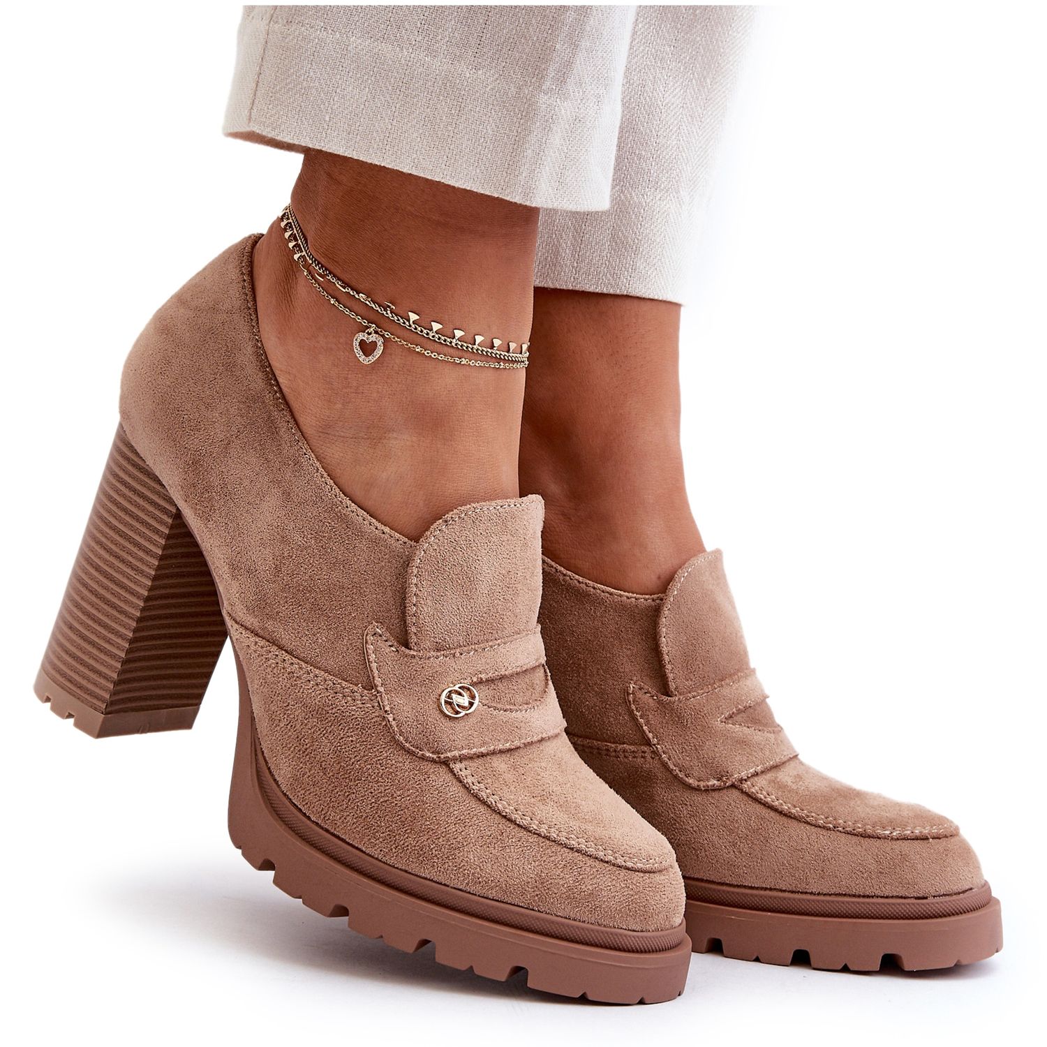 Evento Evento Chaussures en daim écologique pour femmes sur un talon haut Larmaves beiges