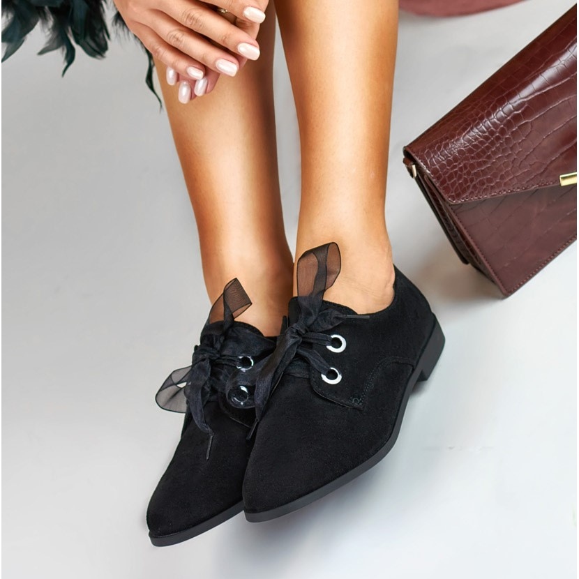 Chaussures classiques et féminines LA.fi en daim écologique en noir universel. Dentelle -up, avec un orteil rond et un insert en cuir naturel - parfait pour la saison printanière / été pour les personnes qui apprécient le confort et le style.