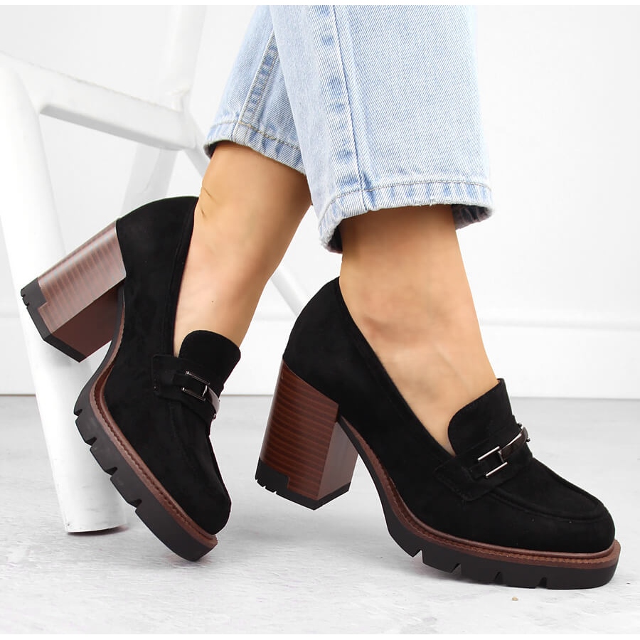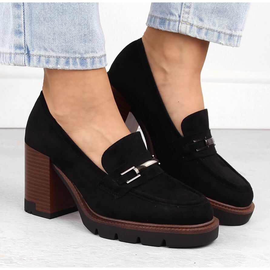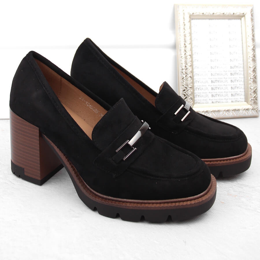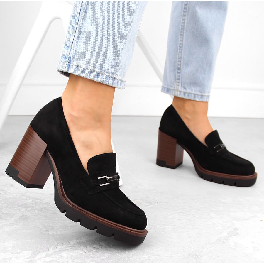 Détails: Chaussures en daim, mocassins femme à talon haut, noir Potocki 12465 le noir