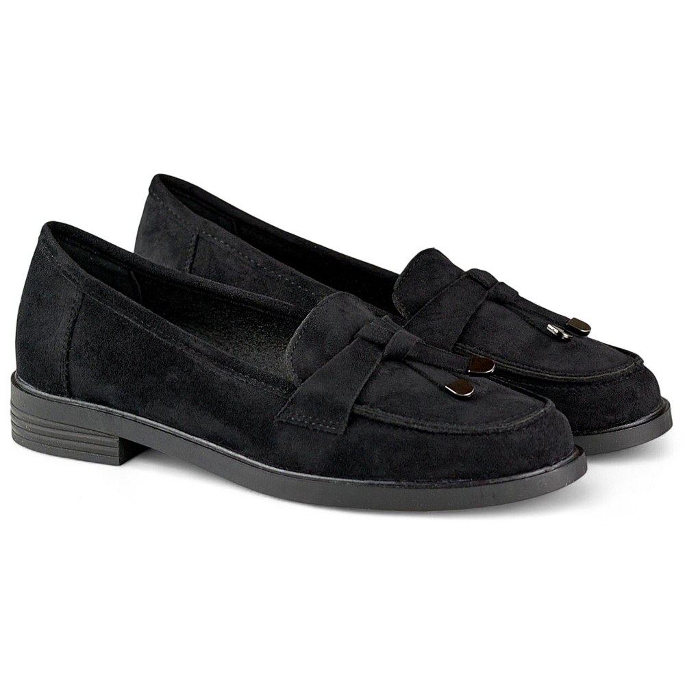 Le haut en daim écologique en noir leur donne du style, et le nez rond les rend extrêmement confortables même pendant une longue usure. Une semelle plate d'une hauteur de 2,5 cm garantit la stabilité et la liberté de mouvement, ce qui fait de ces chaussures un choix idéal quotidiennement et pour des occasions spéciales.