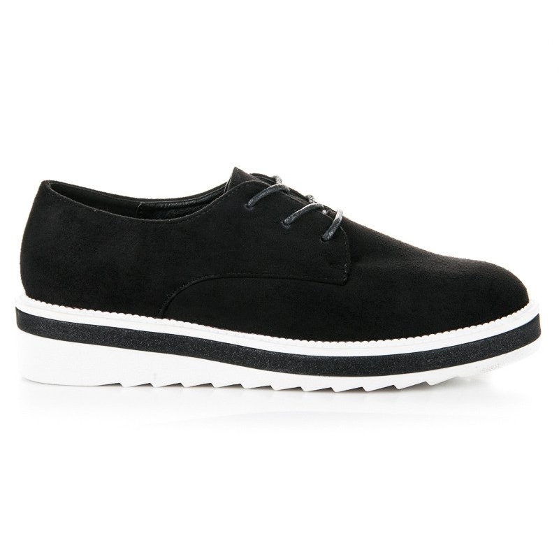 Leur couleur noire classique les rend assortis à de nombreuses tenues, et leur élégant nez rond leur confère un charme subtil. L'intérieur des chaussures est fini en cuir écologique, ce qui assure un confort de port tout au long de la journée. La fermeture à lacets permet un ajustement parfait au pied, et le talon intégré et rigidifié offre stabilité et maintien.