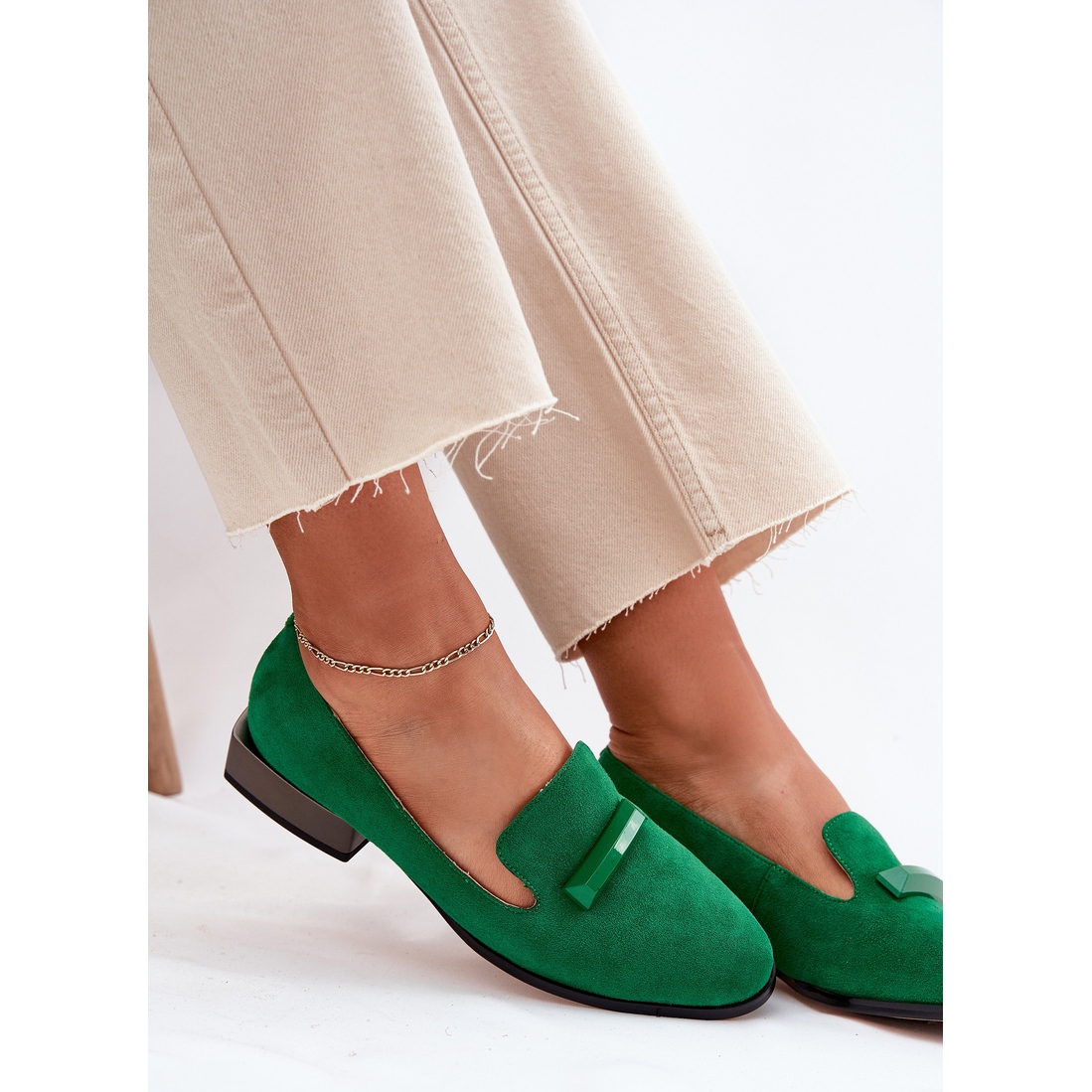 Détails: S.Barski Chaussures en daim pour femmes avec un ornement LZ51-505 vert