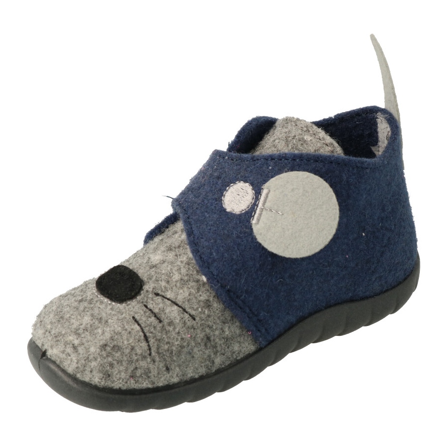 La chaussure Befado 526P080 aux couleurs bleu marine et gris s'adapte parfaitement aux dernières tendances de la mode enfantine, tout en offrant un confort et une protection inégalés aux pieds délicats des enfants qui font leurs premiers pas incertains. Fabriqué en feutre de haute qualité, il est doux et confortable, agréable au toucher et résistant. Chaque détail a été soigné pour que les pieds de l'enfant se sentent bien dans toutes les situations.