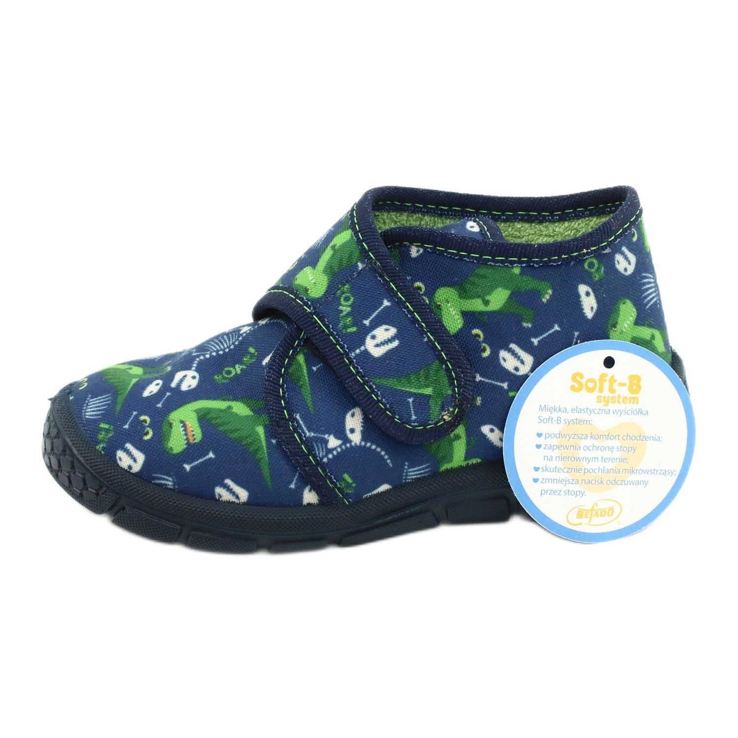 Les chaussures pour enfants Befado 538P037 sont le choix parfait pour les petits explorateurs qui privilégient le confort et le style. Ces pantoufles confortables dans une jolie combinaison de couleurs blanc, bleu marine et vert sont non seulement esthétiques, mais surtout fonctionnelles.