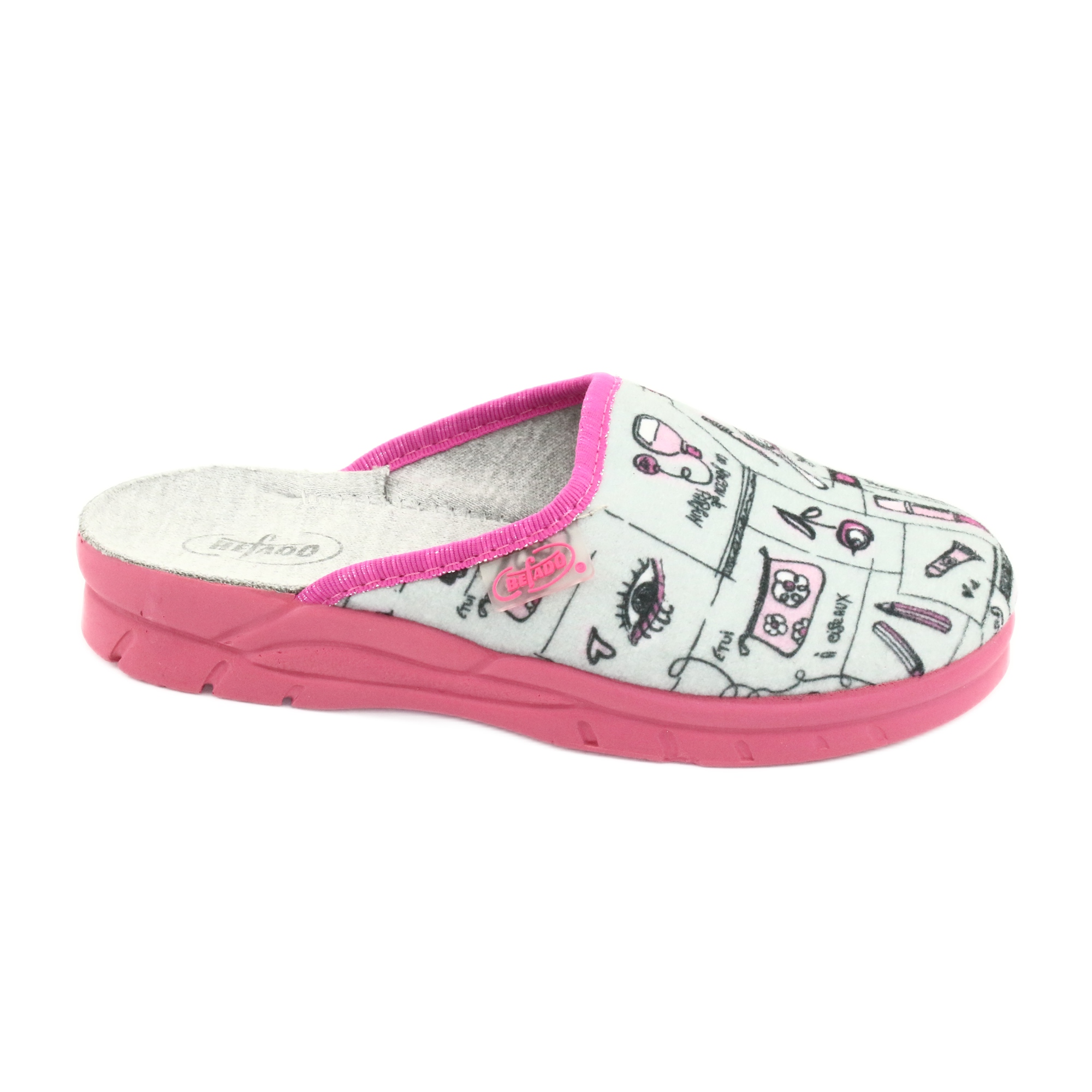 Les tongs Befado 708X002 dans de belles couleurs rose et blanc sont le choix parfait pour chaque petite fille. Ces chaussures uniques de la société polonaise Befado se distinguent par la possibilité de se peindre soi-même, grâce à laquelle chaque enfant peut lui donner son propre style. L'ensemble comprend trois marqueurs de tissu qui encouragent le jeu créatif et développent les intérêts artistiques.