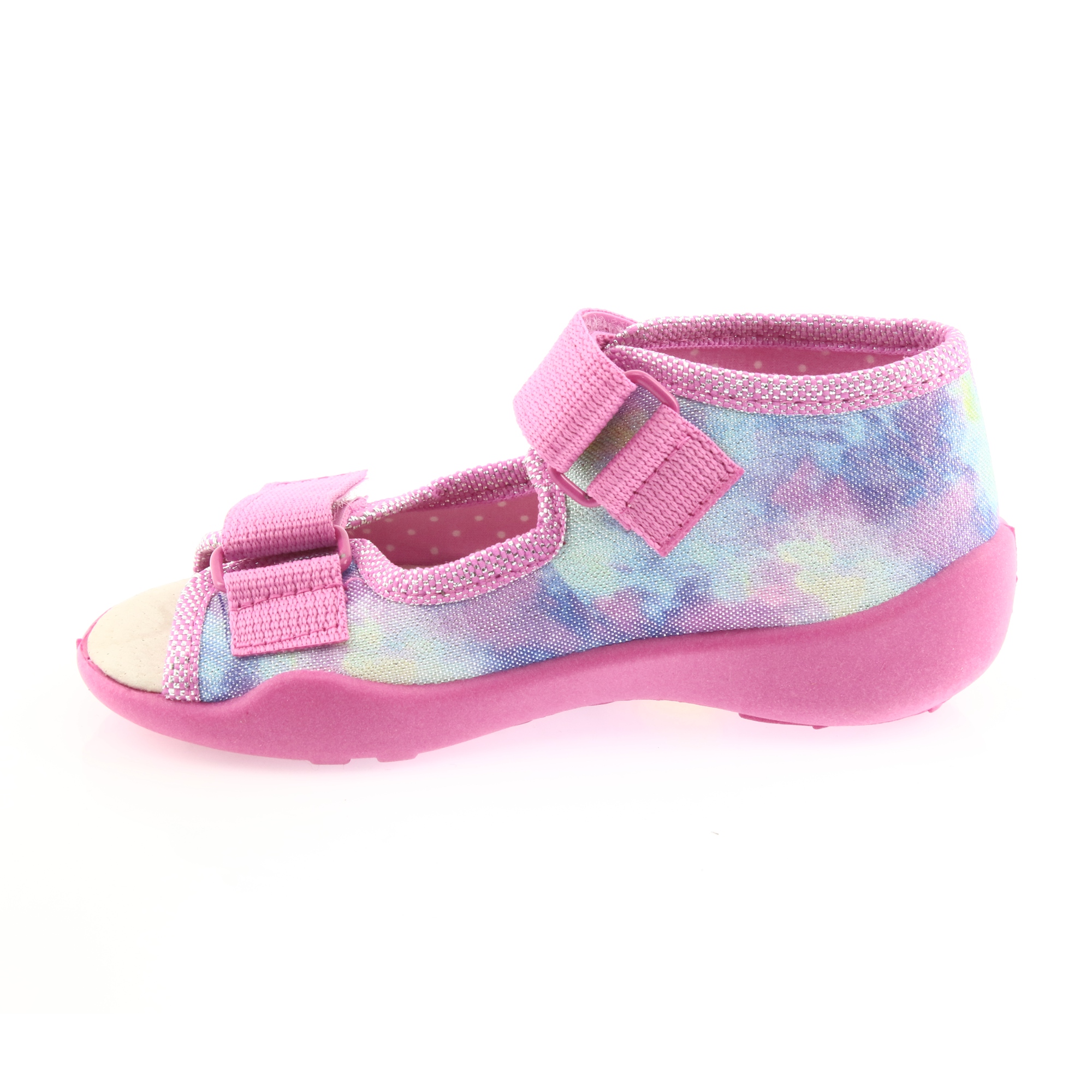 Grâce à l'insert en cuir et au talon rigide, les sandales Befado garantissent la stabilité et un soutien adéquat du pied, ce qui se traduit par un développement sain. Dans des couleurs multicolores avec des accents roses, ces sandales s'intègrent parfaitement dans les tendances de la mode enfant, s'accordant parfaitement avec le style estival.