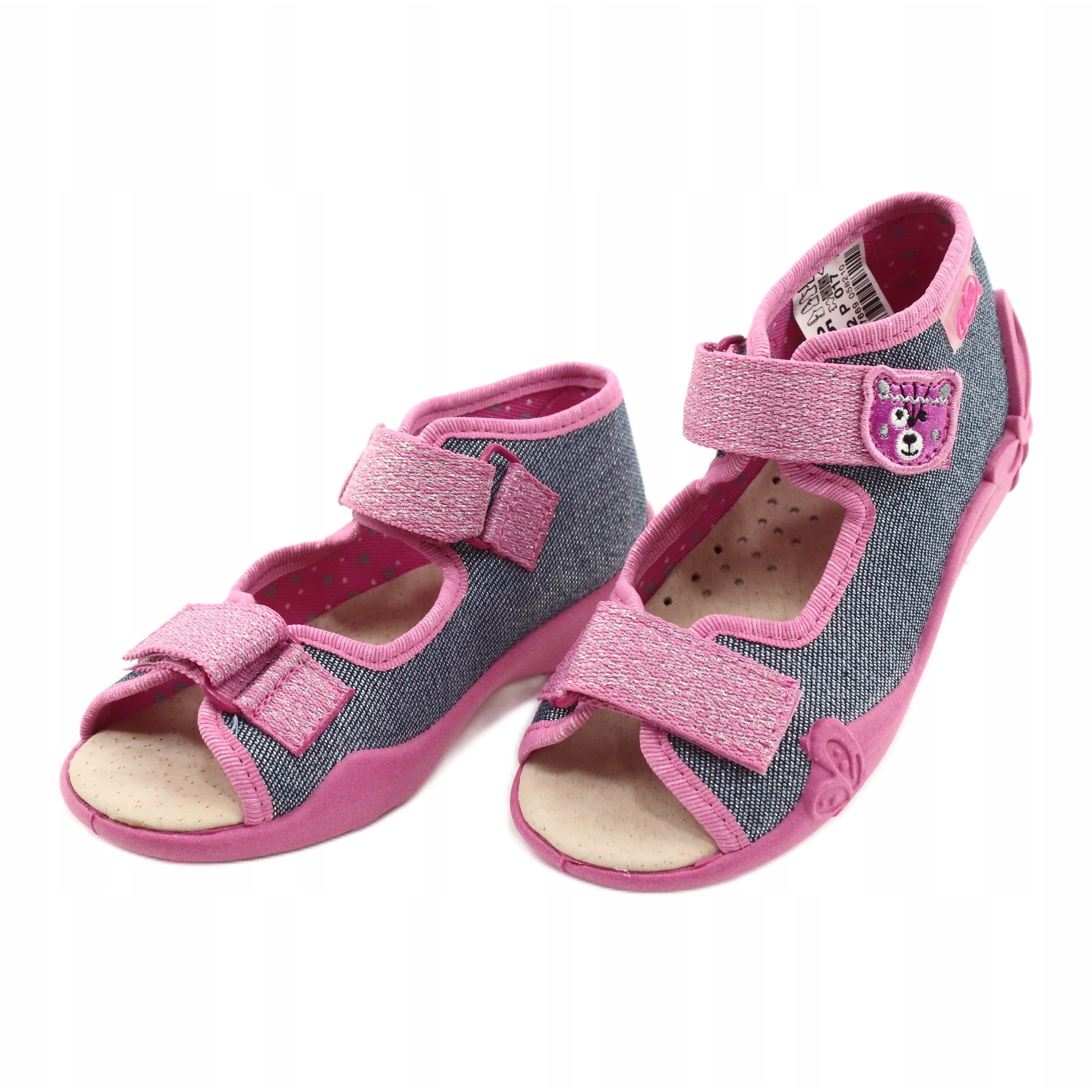 Les chaussures pour enfants Befado de haute qualité sont un produit unique qui offrira au tout-petit un confort même pendant toute la journée. La combinaison parfaite de nuances de gris et de rose, ainsi que des éléments décoratifs en forme de gueule d'ours en peluche et de papillons rendent les chaussures douces et plairont à toutes les petites dames qui les reçoivent. La fermeture velcro améliore considérablement le processus de mise et de retrait des chaussures. Leur statut pro-santé est confirmé par le Healthy Foot Sign. Ce sont des chaussures extrêmement uniques à un prix abordable.