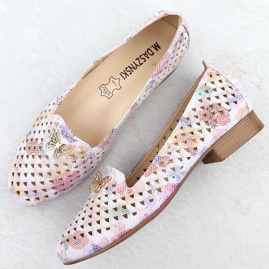 La coupe large et glissante les rend extrêmement confortables et pratiques à utiliser. L'insert en cuir naturel garantit le confort toute la journée, ce qui en fait le choix parfait à la fois au quotidien et pour des occasions spéciales. De plus, les chaussures basses de M. Daszyński sont caractérisées par un talon bas avec une hauteur de 2 cm, ce qui assure la stabilité et le confort lors de la marche.