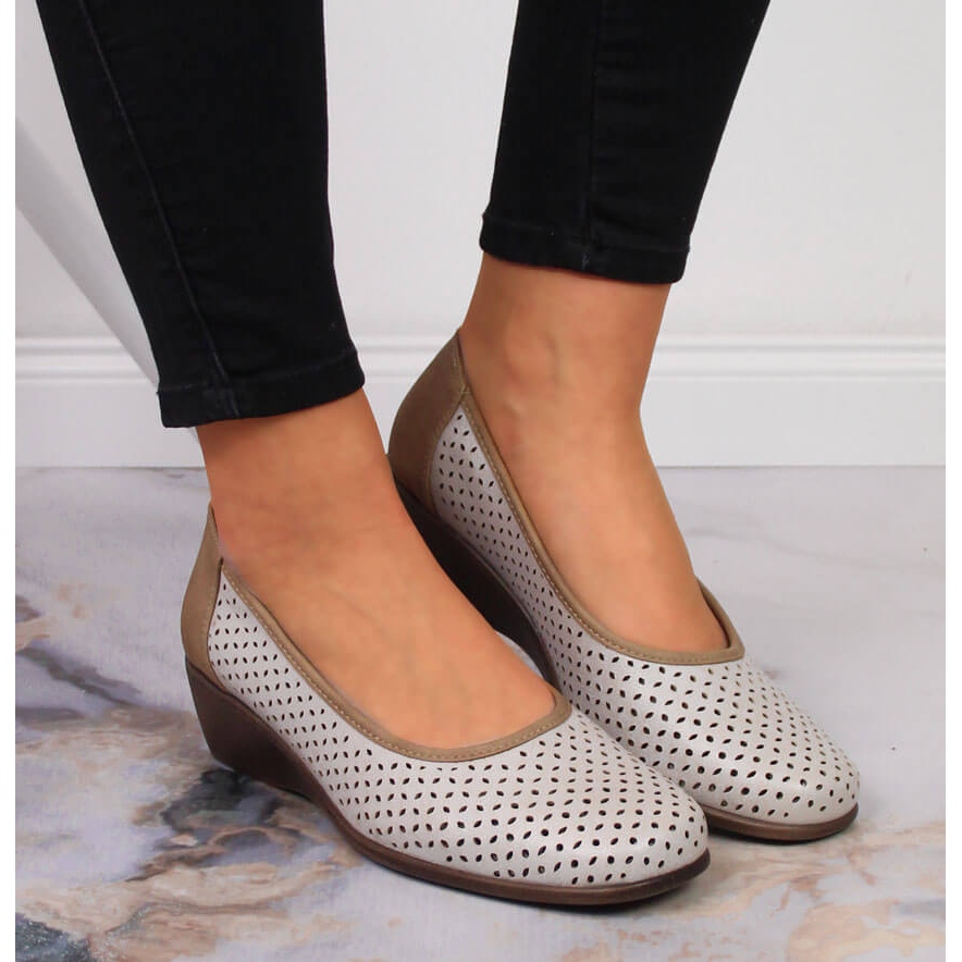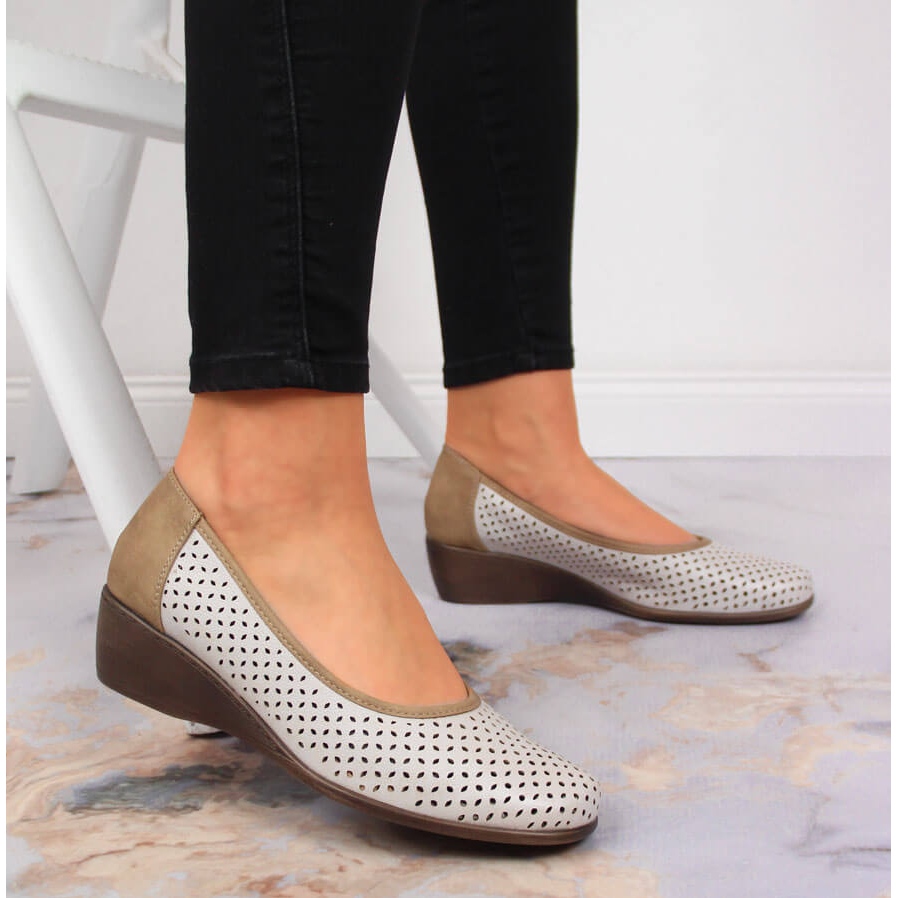 Détails: Chaussures femme ajourées à semelle compensée beige Jezzi