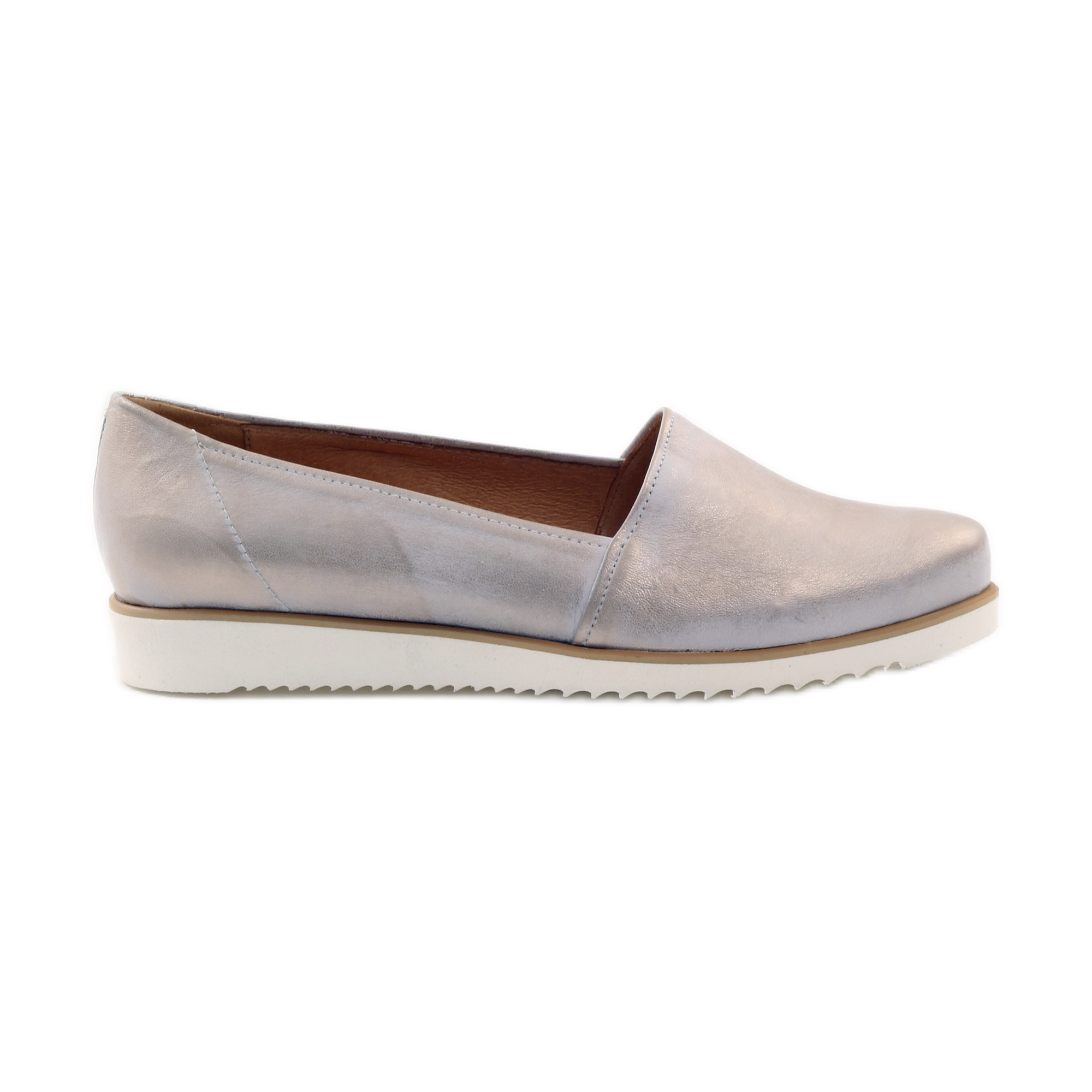 Les chaussures sont placées sur une semelle plate blanche, qui non seulement est élégante, mais garantit également légèreté et flexibilité. Une cale de 2,5 cm de hauteur offre un amorti adéquat, ce qui augmente considérablement le confort de port, notamment en cas d'utilisation à long terme.