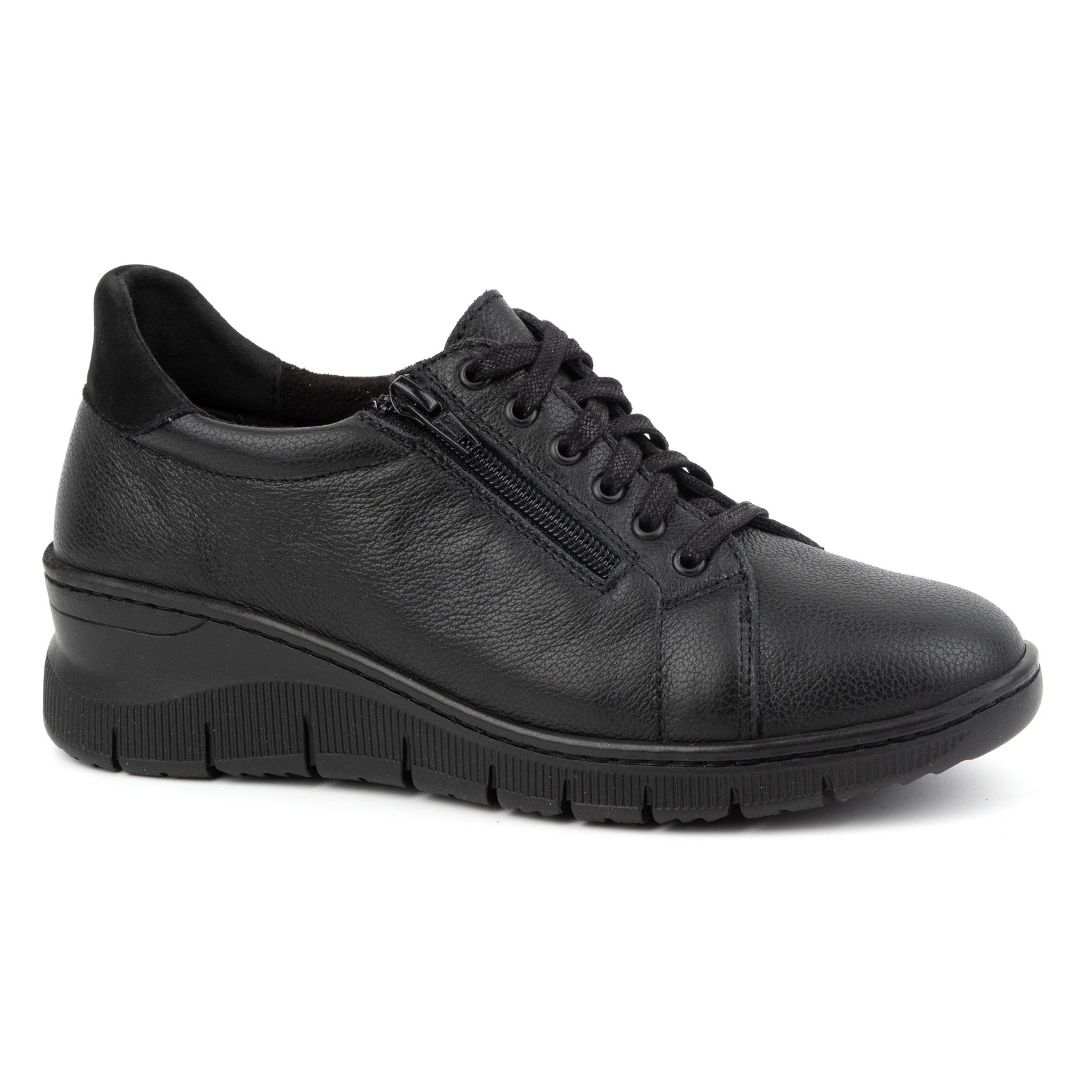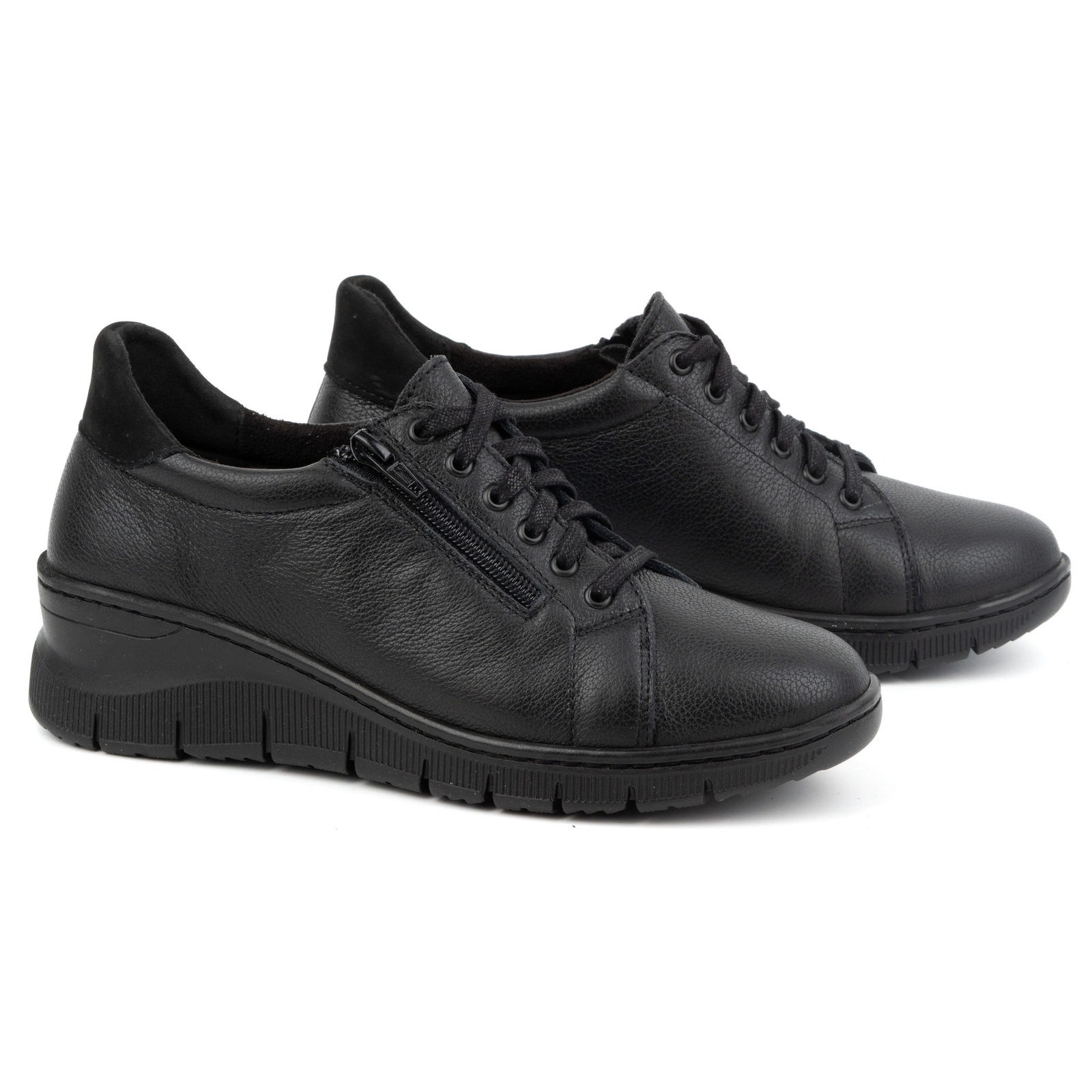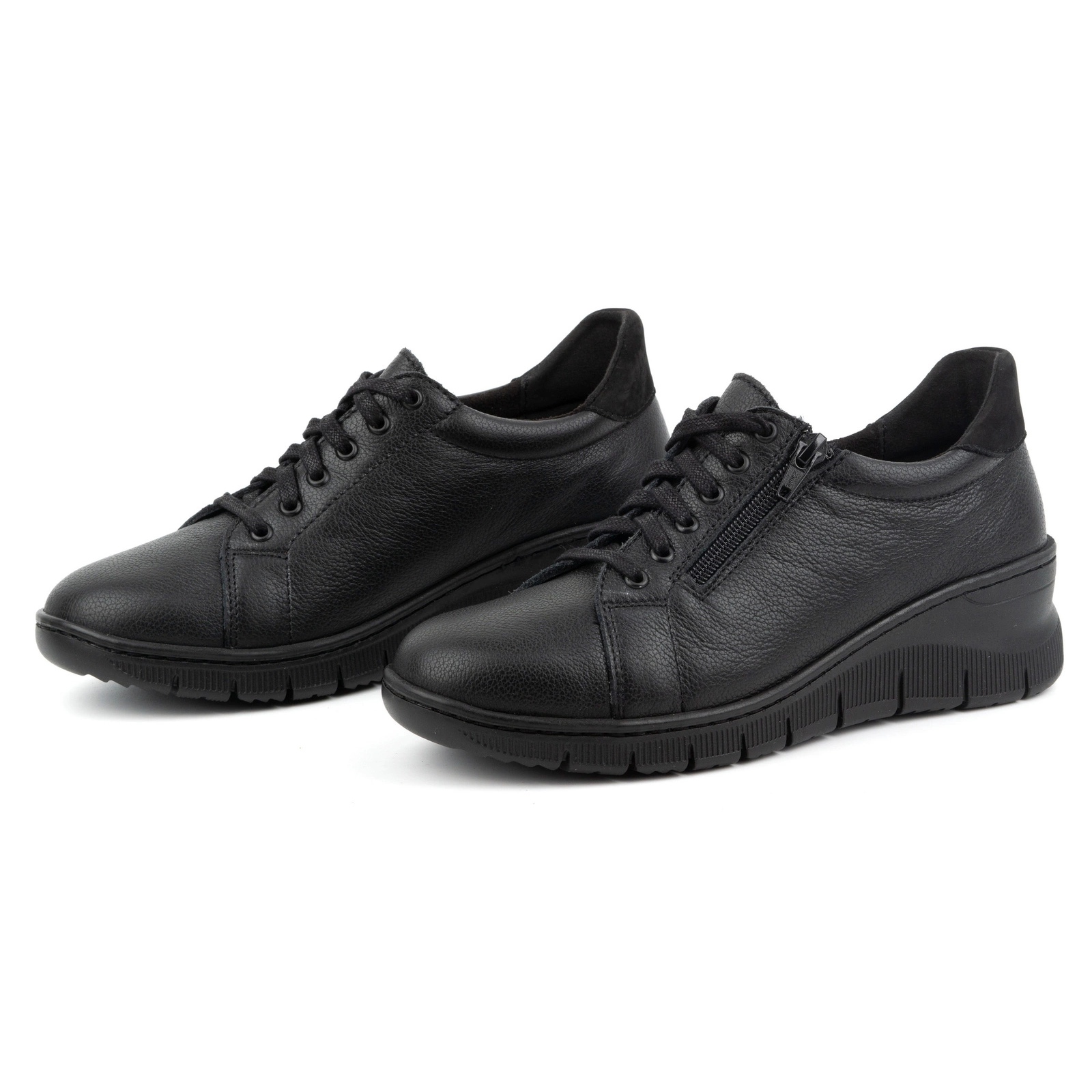 Détails: WASAK Chaussures femme, baskets à lacets en cuir avec fermeture éclair 0703W, noir le noir