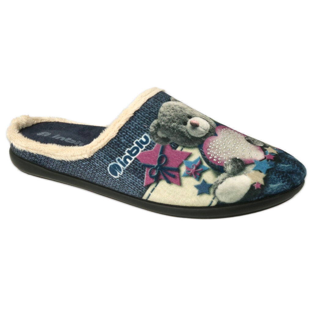 Nous présentons la dernière offre pour toutes les mères et leurs enfants, fruit de la coopération entre deux marques appréciées - Inblu et Befado. La série Mummy & Me nous propose une version créative et colorée de chaussures pour la maison qui apporteront une atmosphère chaleureuse à n'importe quel appartement. Le modèle présenté de chaussures pour femmes Inblu Befado 155D210 en bleu sont des chaussons confortables conçus avec une attention aux détails, parfaits pour l'automne et les jours nuageux.