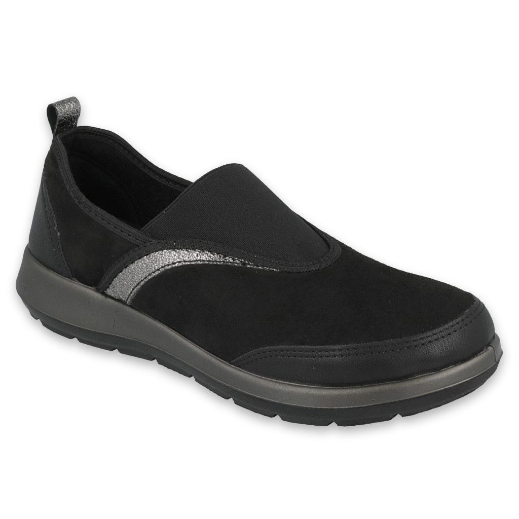 Nous vous proposons de découvrir le modèle unique de chaussures pour femme Befado 156D006 dans un élégant coloris noir aux subtils accents argentés. Ces pantoufles à la mode sont le choix parfait pour les femmes qui apprécient non seulement le style, mais surtout le confort.