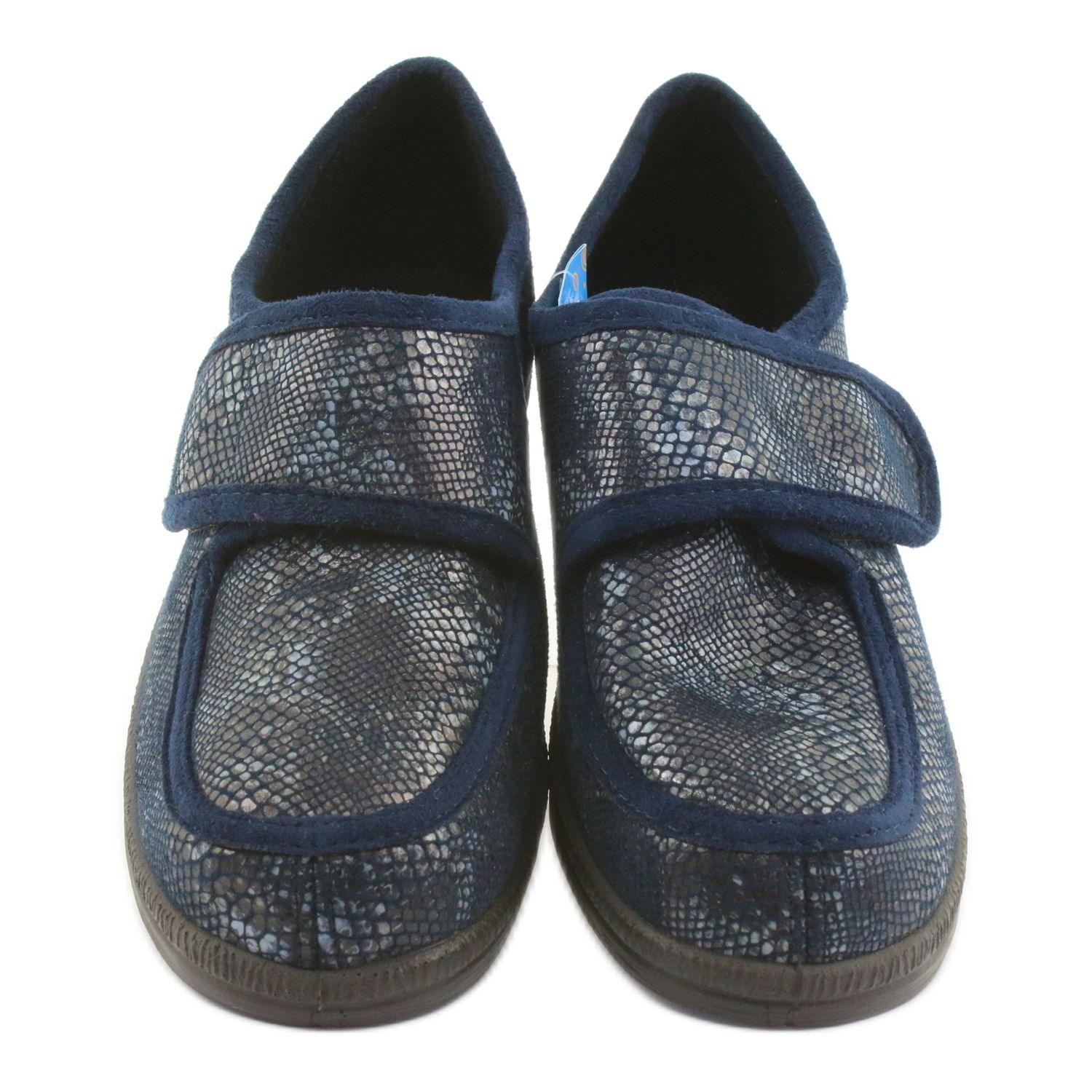Voici des chaussures pour femme Befado pu 984D015 élégantes et fonctionnelles de couleur bleu marine, qui seront parfaites aussi bien à la maison que lors des promenades quotidiennes en plein air. Grâce à l'utilisation d'un matériau extensible et élastique sur la tige, les chaussons s'adaptent à la forme du pied, ce qui est particulièrement important pour les personnes ayant des problèmes de santé, comme des déformations du pied.