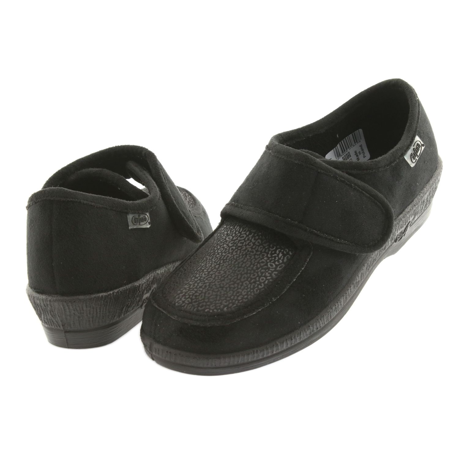 Nous présentons les chaussures pour femmes Befado 984D017, pratiques et confortables, dans une élégante couleur noire. Ces chaussons ont été soigneusement conçus pour un usage quotidien aussi bien en intérieur qu'en extérieur. La tige réalisée dans une matière souple et extensible s'adapte parfaitement à la forme du pied, ce qui sera particulièrement apprécié par les personnes présentant des déformations ou des problèmes de santé.