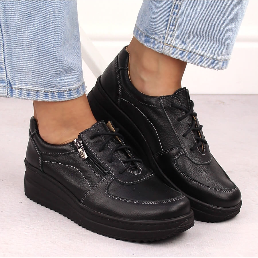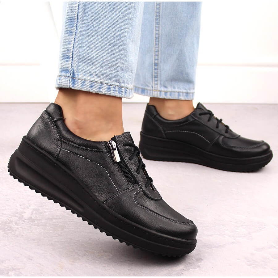 Chaussures pour femmes en cuir confortable Black Helios 419 est le choix parfait pour les femmes qui apprécient à la fois l'élégance et la commodité au quotidien. Conçus par un fabricant polonais réputé, Helios, ces chaussures se distinguent par une coupe féminine intéressante qui met parfaitement met en valeur la figure et est belle sur la jambe.