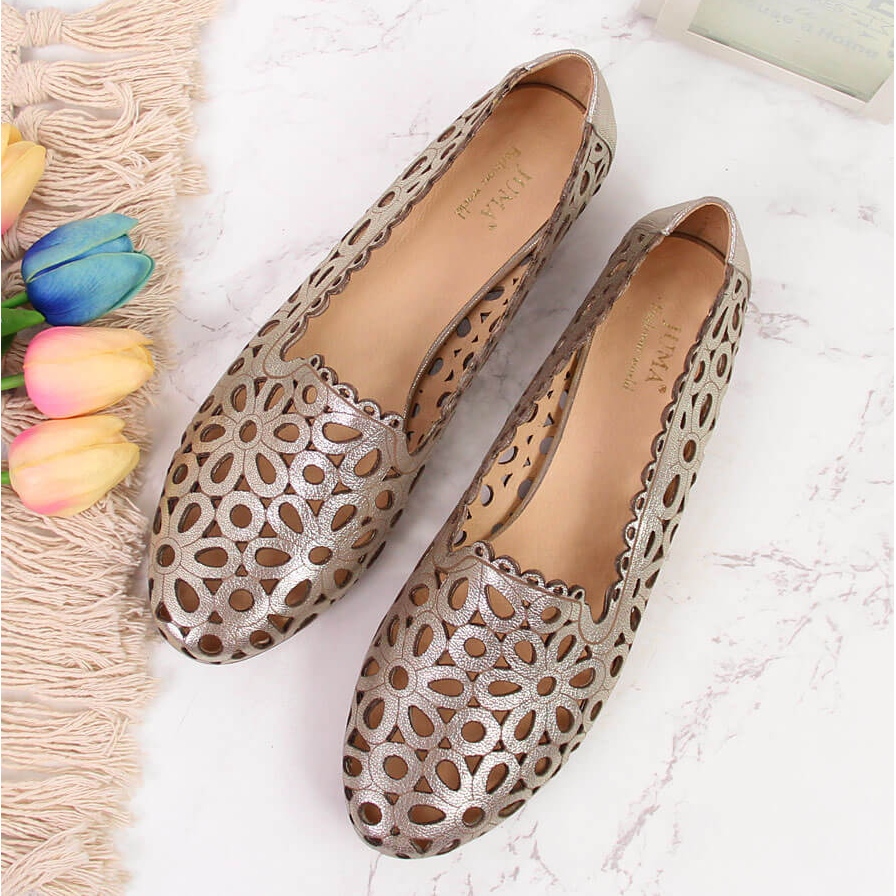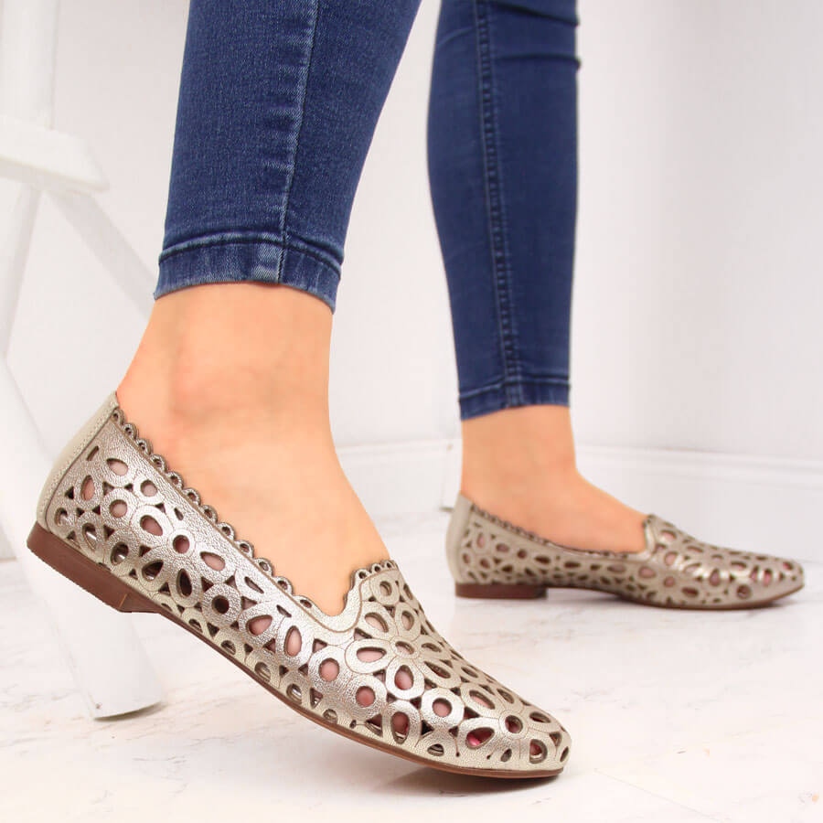 Détails: Chaussures femme en cuir ajouré doré Juma
