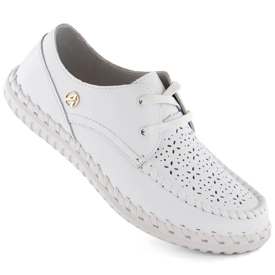 Détails: Chaussures femme en cuir, mocassins à lacets, blanc Artiker 54C-1520 blanche