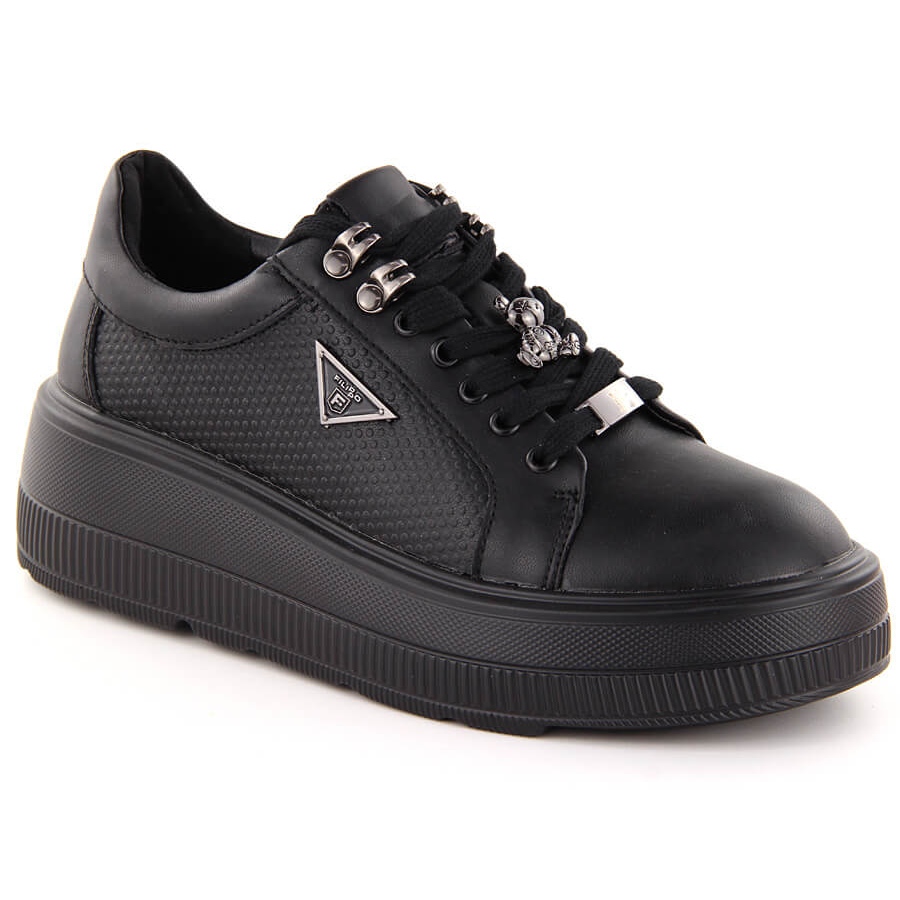 Le modèle est caractérisé par une couleur noire classique, qui se déroule parfaitement avec diverses stylisations, à la fois décontractées et plus élégantes. La tige en cuir de haute qualité est extrêmement facile à prendre en charge, et la plate-forme de 4 cm d'épaisseur et le talon de 6 cm de haut assurent la stabilité et le confort lors de la marche.