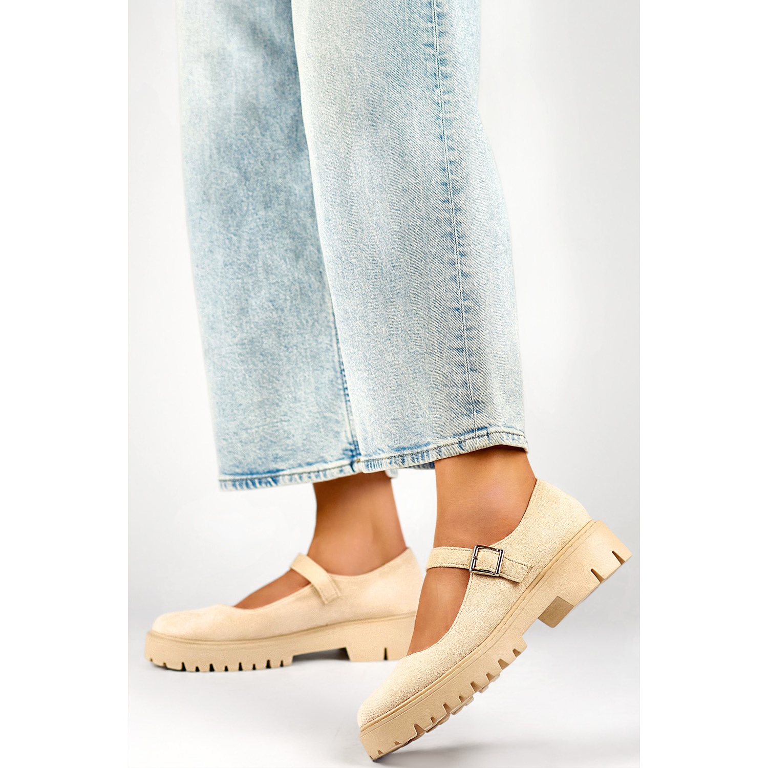 - Modèle: Chaussures en daim beige avec fermeture à boucle
