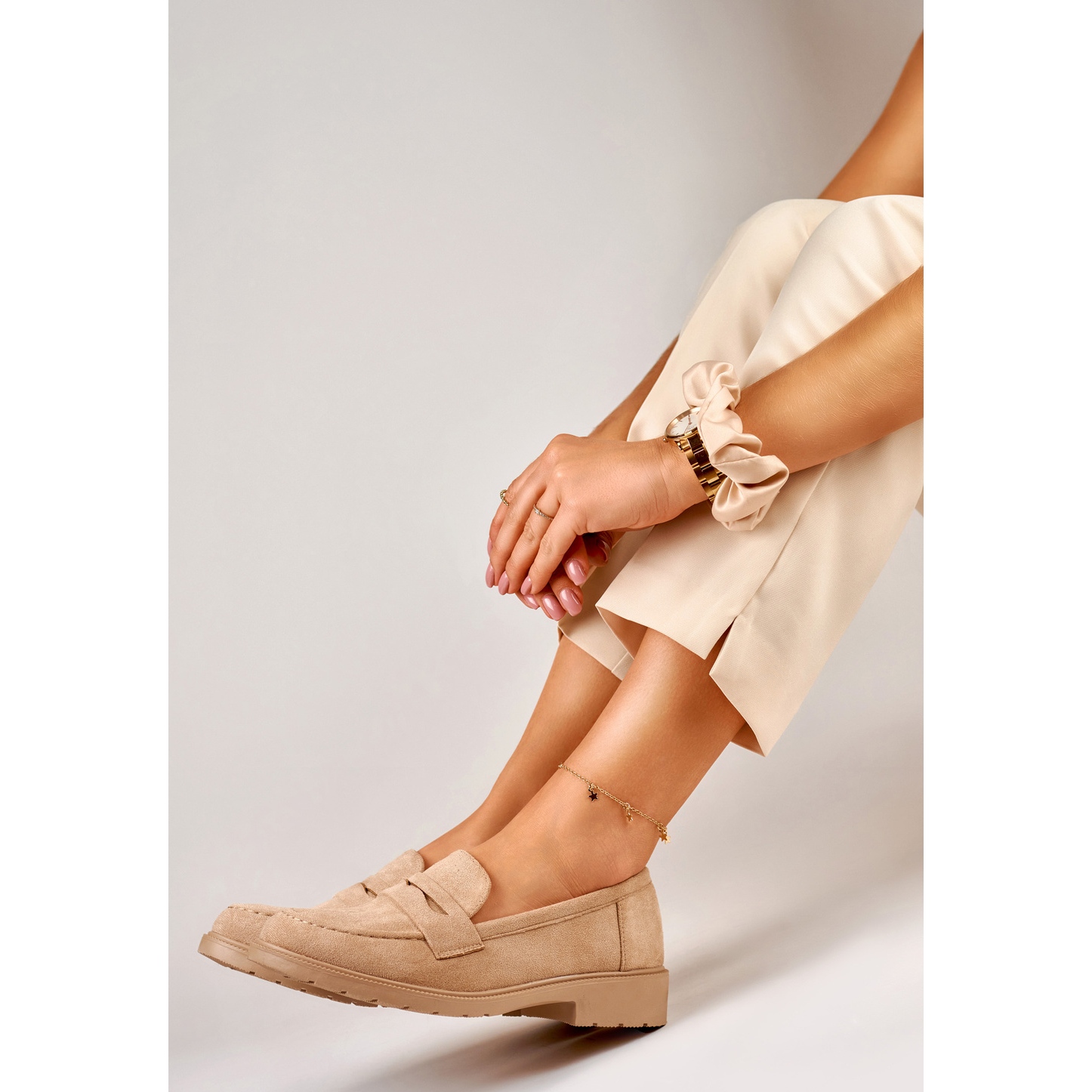 Les chaussures sont dépourvues de motifs supplémentaires, ce qui souligne leur style minimaliste et classique. Leur partie extérieure est en cuir suédé écologique, ce qui les rend agréables au toucher et élégants. Ils restent très populaires parmi les femmes qui apprécient le confort et le bon style.