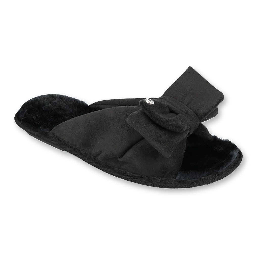 Le modèle 155D110 se distingue par une finition et des matériaux de haute qualité. L'intérieur des chaussons est doublé d'une fourrure douce, qui offre une excellente isolation et une agréable sensation de chaleur, tout en rendant unique chaque moment passé à la maison. La coupe unique et le nœud décoratif leur confèrent un caractère charmant, rendant les pieds élégants même à la maison.