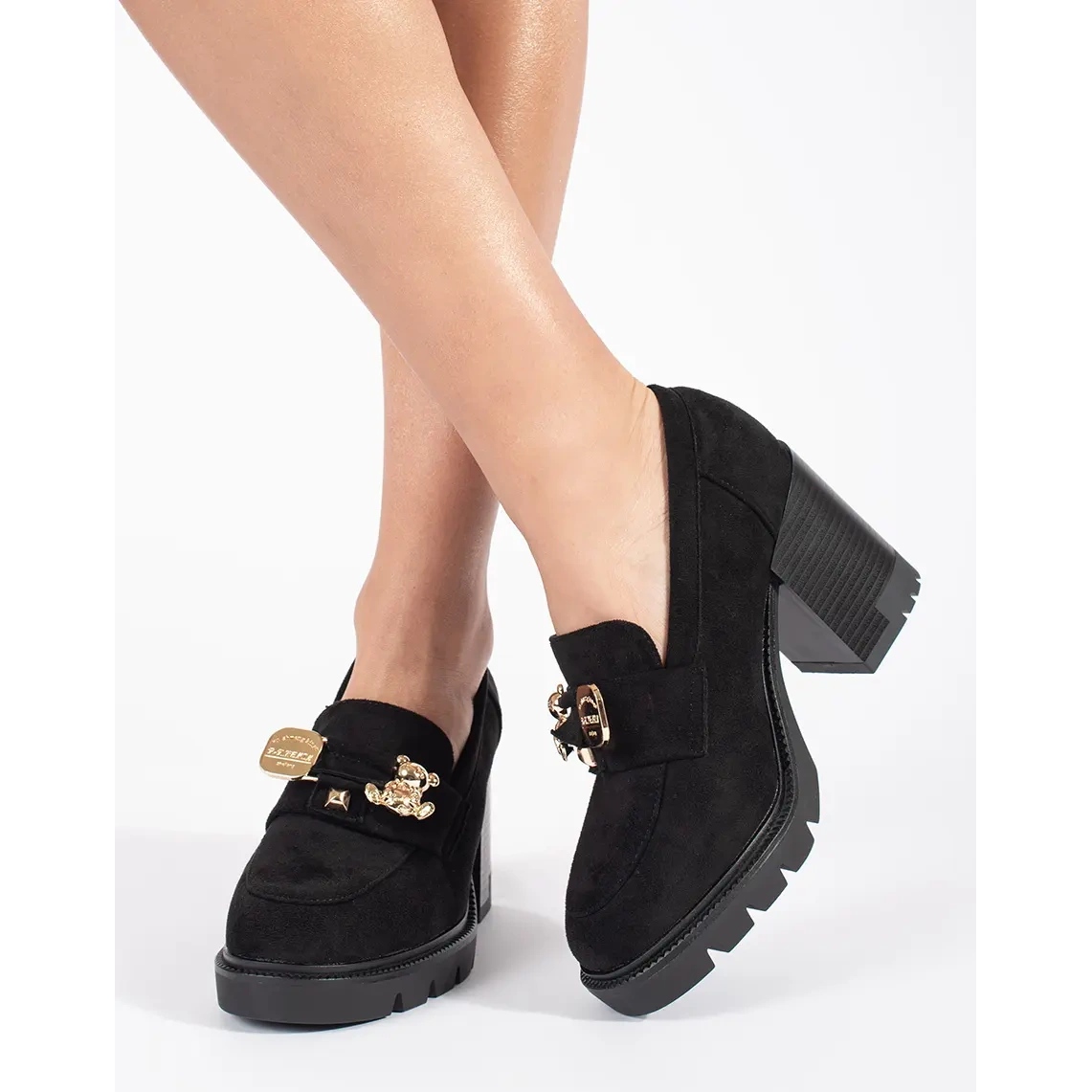 Inna marka Chaussures femme noires en daim à talon haut et décoration en métal le noir
