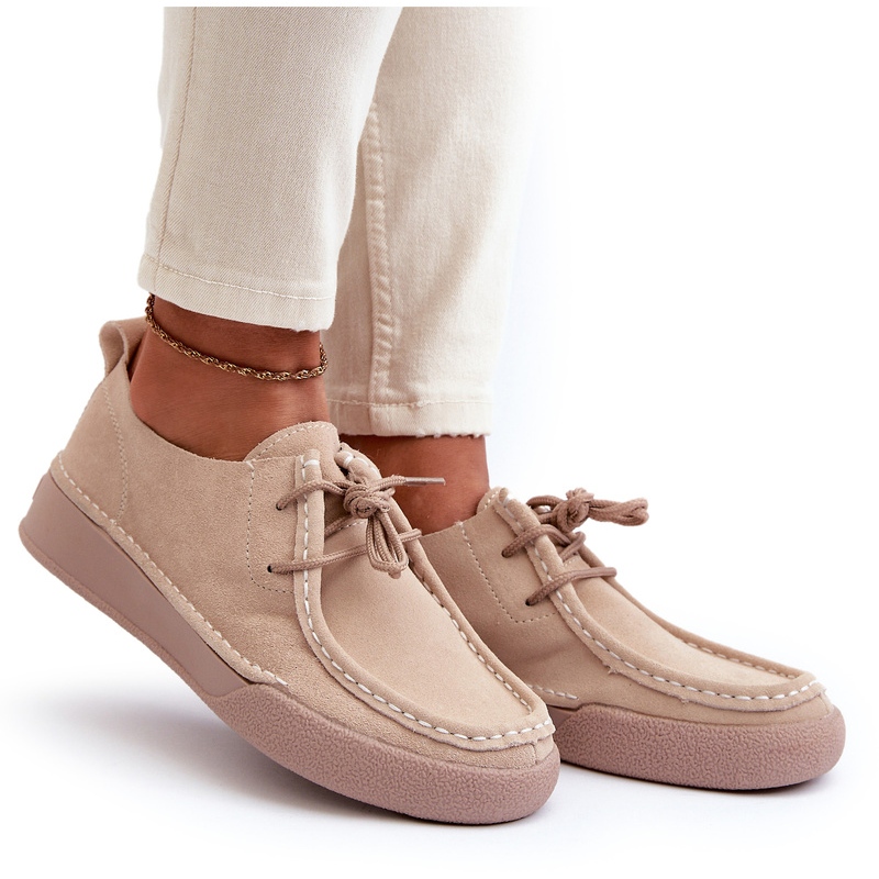 Sergio Leone SP021 Les chaussures en daim à Beige sont une combinaison parfaite d'élégance et de confort, qui satisfera certainement les attentes de chaque femme. Fabriqués en daim écologique de haute qualité, ces chaussures offrent non seulement un look élégant, mais aussi le confort de porter, grâce à un insert doux de cuir naturel.