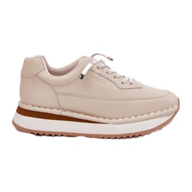 Big Star Beige Chaussures de sport pour femmes Taille 37 Cuir naturel Sur la plateforme
