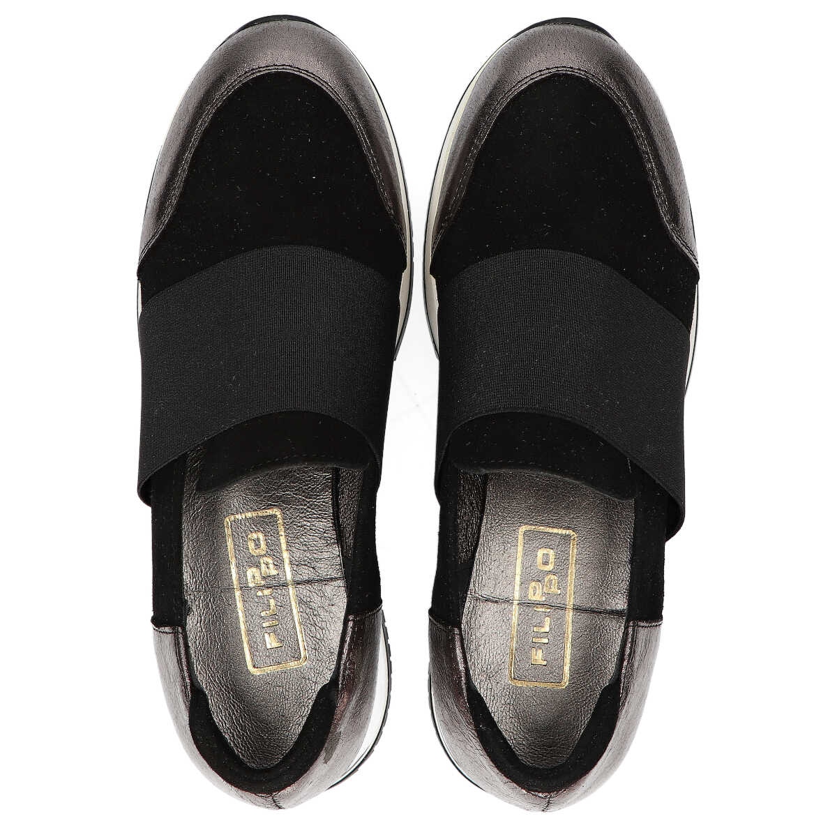 Les chaussures Filippo 018 noires avec éléments argentés sont un choix parfait pour les femmes qui apprécient le confort et un look tendance au quotidien. Fabriqués en daim de haute qualité et en cuir naturel, ils offrent non seulement un design élégant, mais également une durabilité.