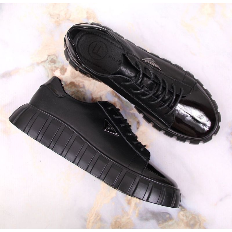 Les chaussures en cuir Filippo en PAW365 en noir sont une proposition idéale pour les femmes qui apprécient une apparence à la mode et le confort de l'usure. En cuir naturel de haute qualité, ces chaussures se distinguent par une tige peinte magnifiquement brillante, qui ajoutera de la splendeur à tout style. Leur couleur noire universelle les fait parfaitement se fondre avec diverses combinaisons, du décontracté à élégant.