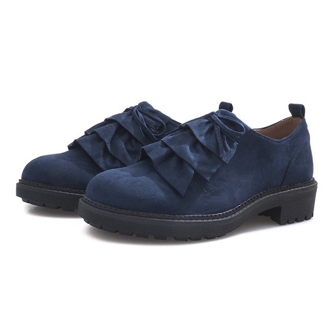 La couleur bleu marine des chaussures permet de les associer facilement avec d'autres vêtements, et le bout rond ajoute de la subtilité. L'intérieur en cuir écologique assure le confort de port, et la semelle synthétique garantit durabilité et adhérence.