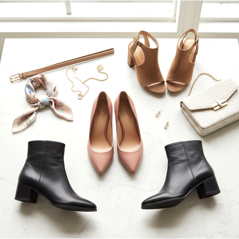 Des chaussures aux couleurs neutres – noir, beige ou marron – sont également une solution sûre. Ces couleurs s'adaptent à la plupart des styles et conviendront aussi bien au bureau qu'au quotidien.