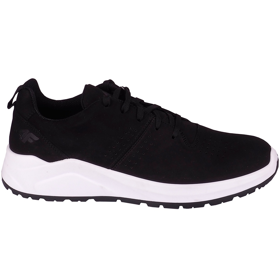 Chaussures modernes 4F City créées pour le confort et la durabilité au printemps. La tige en nubuck naturel donne au modèle une apparence et une force élégantes et mates, et le laçage classique permet un ajustement précis au pied. La semelle blanche contrastée met l'accent sur la nature contemporaine des chaussures, et Universal Black le rend facile à combiner avec des stylisations quotidiennes et intelligentes.