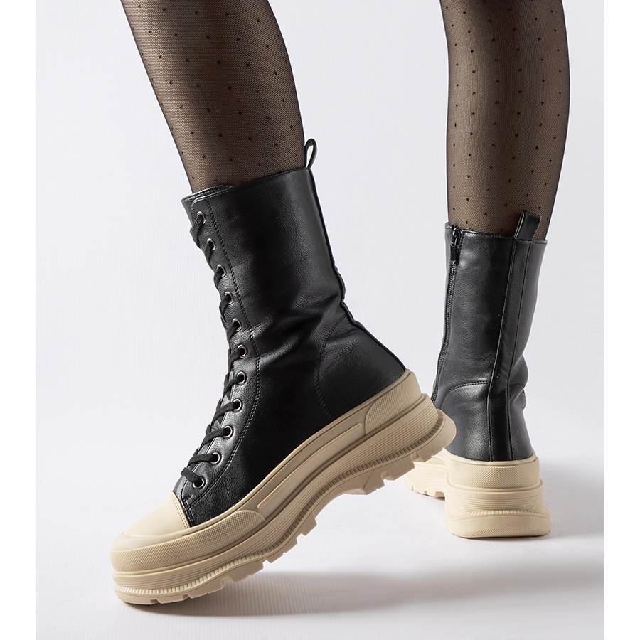 Les bottines Giselda sont un choix parfait aussi bien pour un usage quotidien que pour des occasions spéciales - elles seront un complément parfait aux combinaisons décontractées et plus élégantes. Elles se caractérisent par un coloris noir intemporel qui s'agence facilement au reste de votre garde-robe et une semelle beige qui offre un contraste stylé.