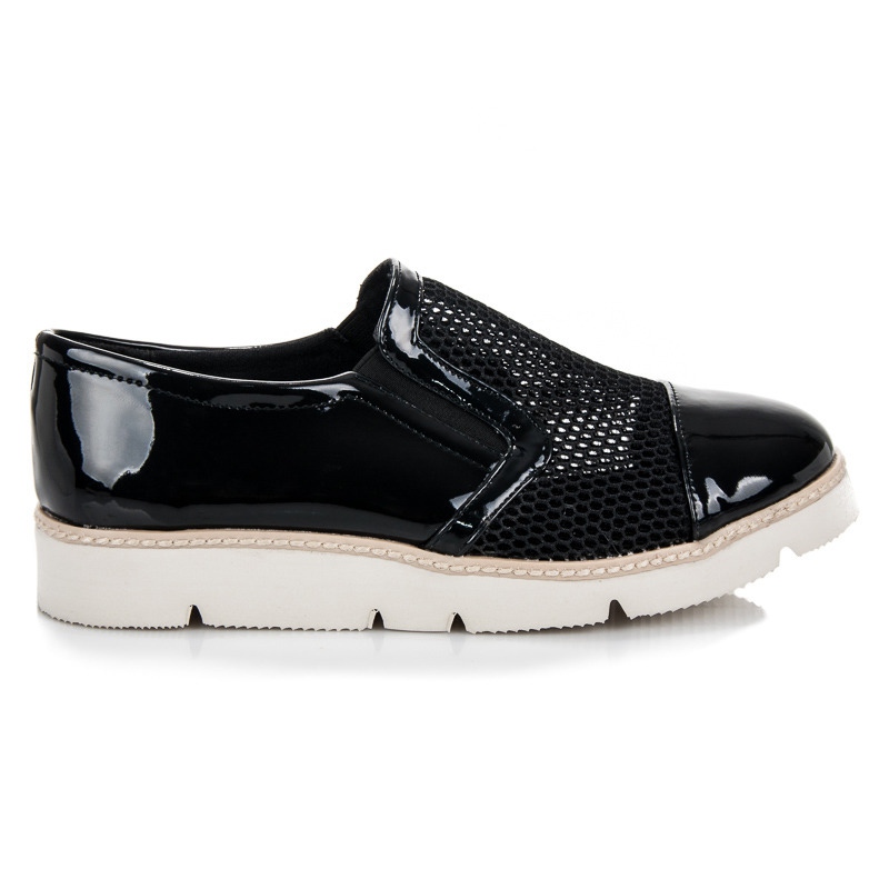 Découvrez l'élégance et le confort avec les chaussures vernies Vinceza, qui correspondent parfaitement aux dernières tendances de la mode. Ces chaussures noires élégantes sont un choix parfait pour les femmes qui apprécient à la fois l'esthétique et le confort de port. Leur coupe slip-on et leur design ajouré assurent facilité d'enfilage et respirabilité, ce qui les rend parfaits pour les journées de printemps et d'été.