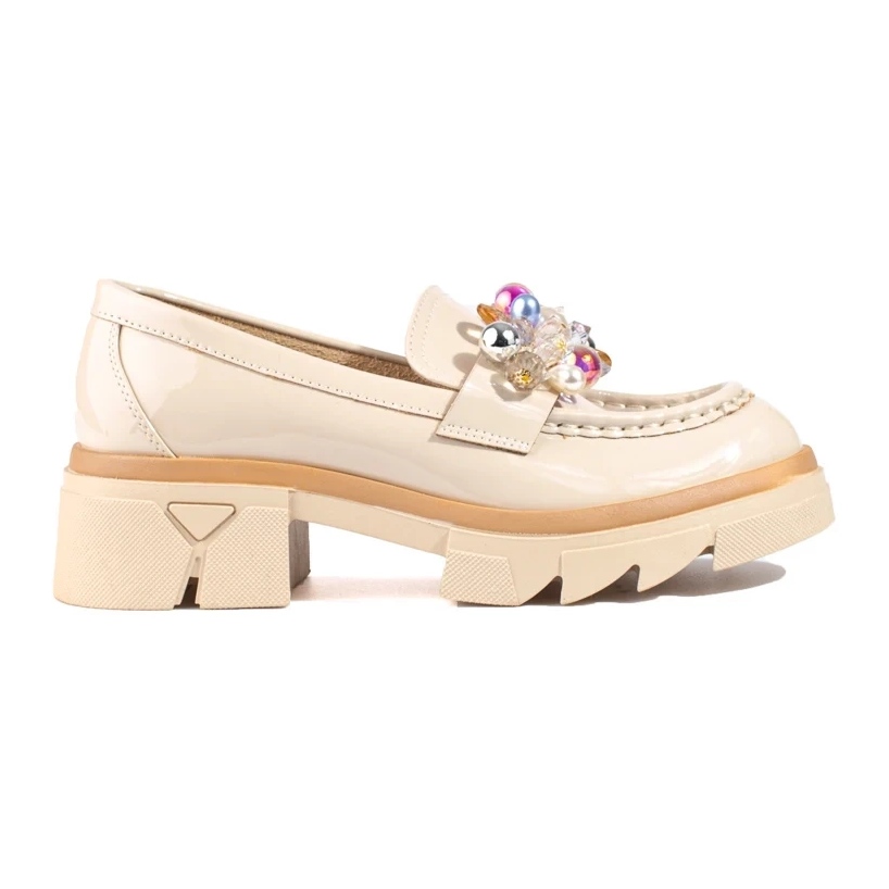 Les chaussures de femme verni beige sur une épaisse semelle Shelovet - élégance et confort tous les jours
