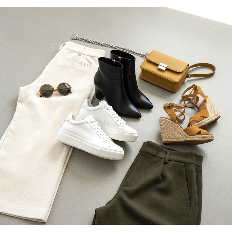 Au printemps et en été, vous pouvez également porter des sandales compensées ou des espadrilles avec un pantalon large. Ces chaussures ajouteront un caractère estival à votre tenue, tout en étant à la mode et élégantes. Les modèles avec des cravates ou des décorations accrocheuses conviendront particulièrement bien.