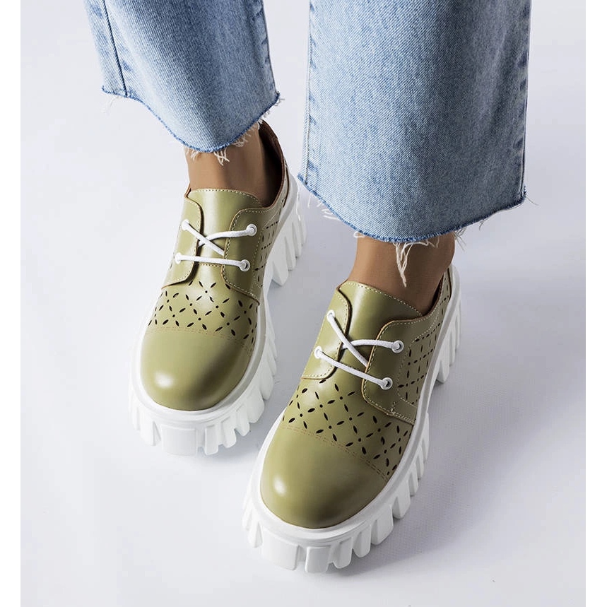 Rafraîchissez votre look printemps-été avec des chaussures insolites qui allient confort et style unique. Les chaussures massives ajourées vertes présentées sont une proposition idéale pour toute femme qui valorise l'originalité et le confort de port. Conçues par un fabricant indépendant, ces chaussures se démarqueront certainement de l'offre de chaussures traditionnelles.