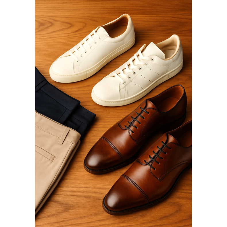 Projets communs Achilles Low (si le budget le permet) ou Adidas Stan Smith / Koio (budget moyen). Ce sont les chaussures les plus universelles : elles vont avec tout.