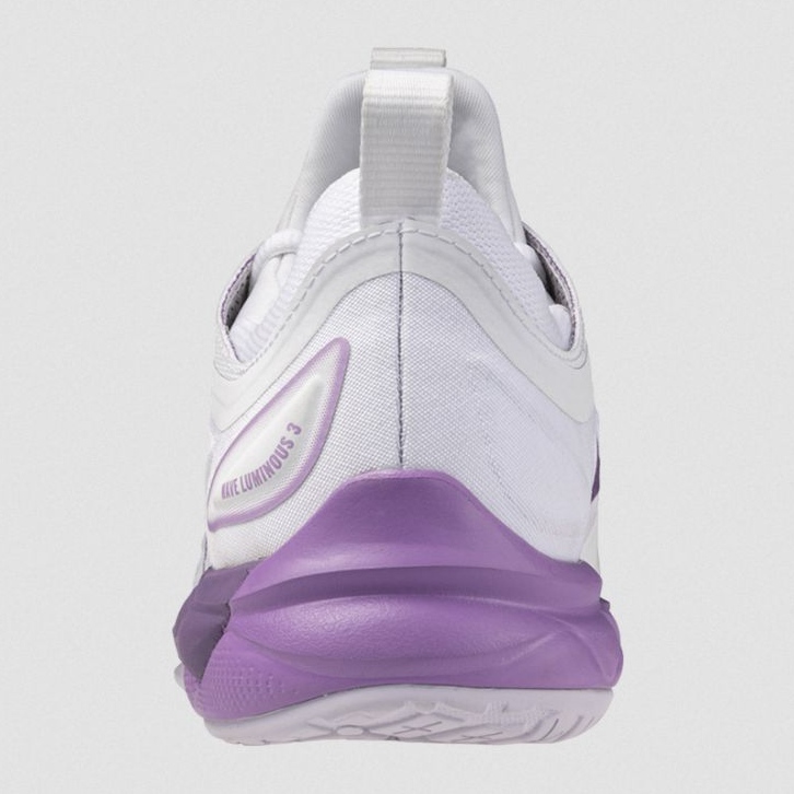 Mizuno Wave Luminous 3 n'est pas seulement une fonctionnalité, mais aussi du style. Des chaussures blanches avec des accents violets attireront certainement l'attention, et leur conception unisexe les rend parfaits pour tout le monde, quel que soit le sexe.