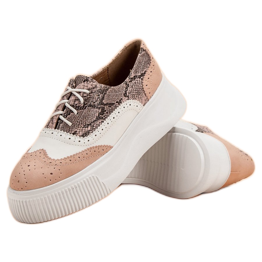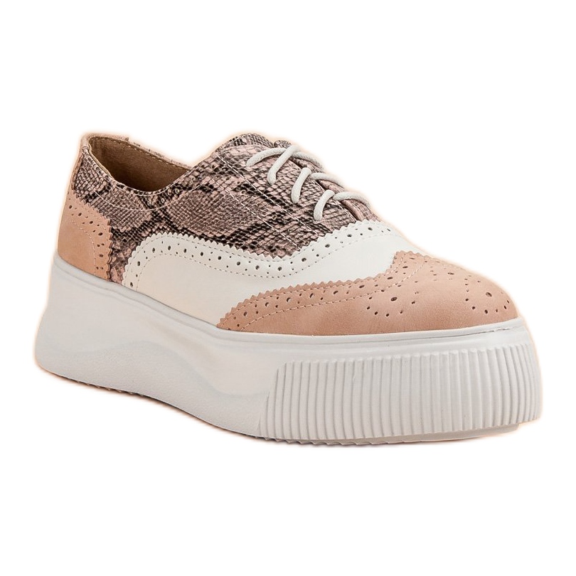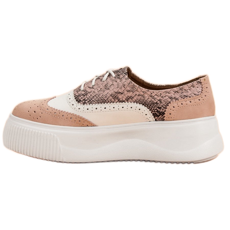Les chaussures VICES se caractérisent par un bout rond et une fermeture à lacets pratique, qui leur permet de s'adapter parfaitement au pied. La hauteur de la plateforme de 5 cm ajoute une élégance subtile et les rend en même temps confortables pendant les activités toute la journée. Grâce au talon souple intégré, le pied est suffisamment stable, ce qui augmente le confort d'utilisation.