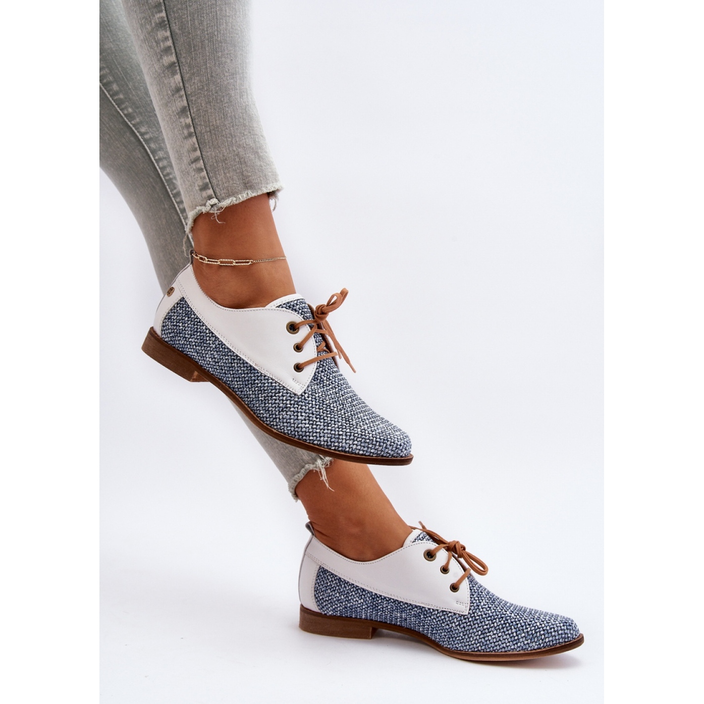 Les chaussures pour femmes en cuir naturel et en tissu de haute qualité sont extrêmement impressionnantes. Monté sur un talon plat et stable. Les bouts arrondis ajoutent de la délicatesse et le laçage classique garantit un ajustement parfait au pied. Ces chaussures basses mettront non seulement en valeur votre style individuel, mais assureront également un confort à chaque pas.