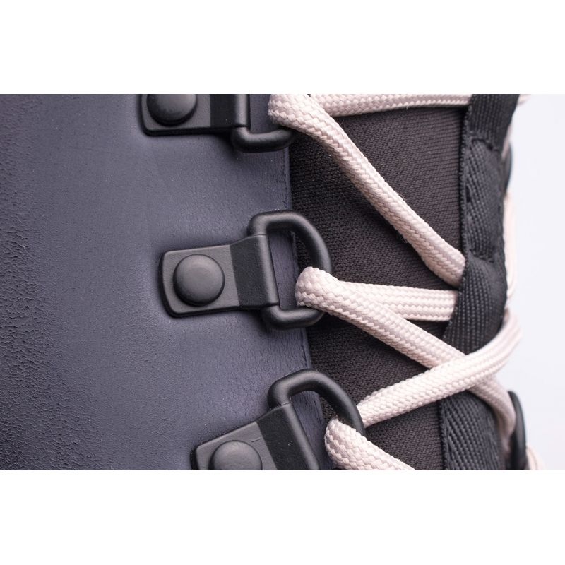 Les propriétés des chaussures incluent une semelle antidérapante épaisse et dentelée, une tige haute et une bonne isolation. L'intérieur des bottes est doublé de micropolaire pour plus de chaleur et de confort. Les chaussures sont imperméables, ce qui les rend idéales pour les conditions météorologiques changeantes. Le laçage permet un ajustement individuel au pied et la construction stable maintient bien le pied.